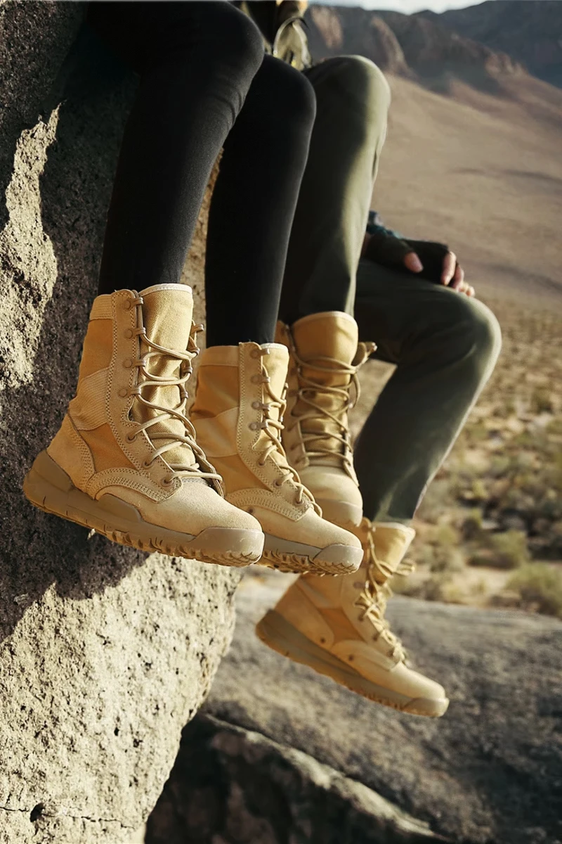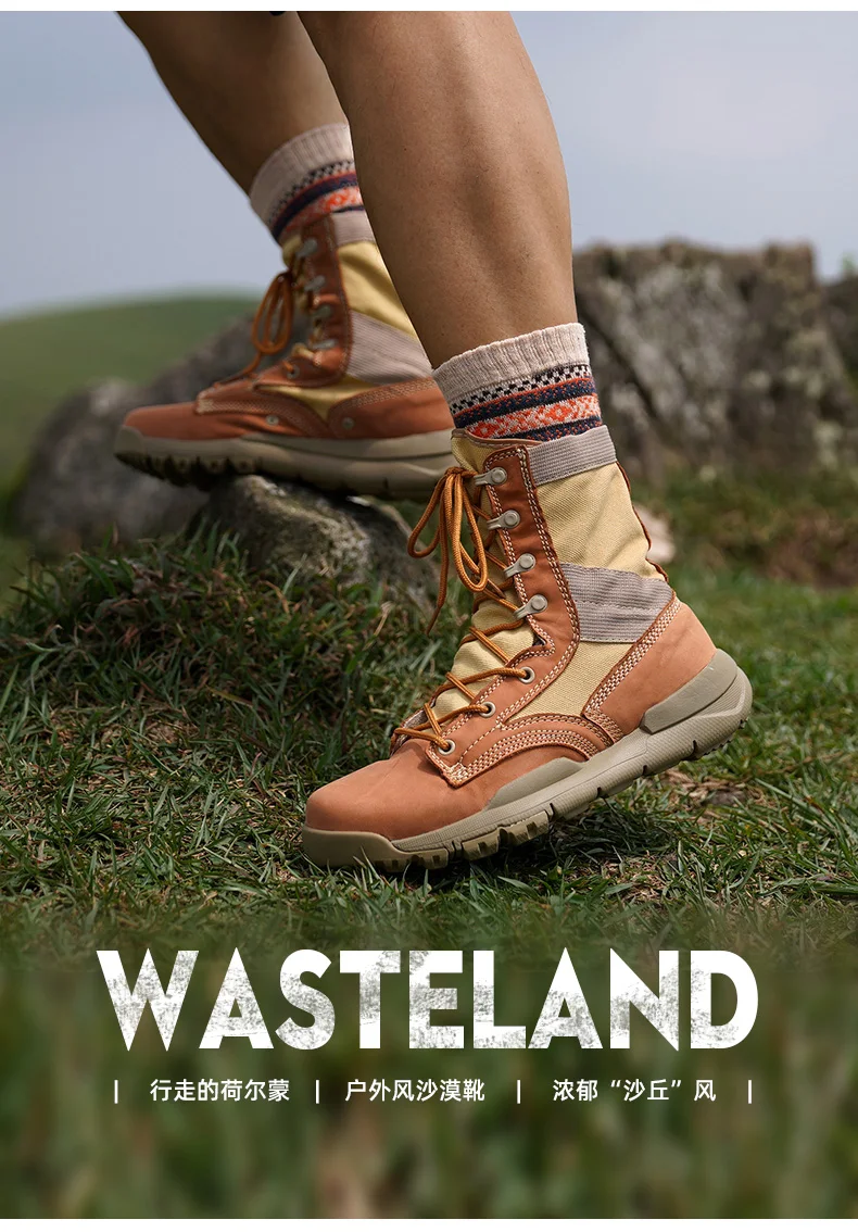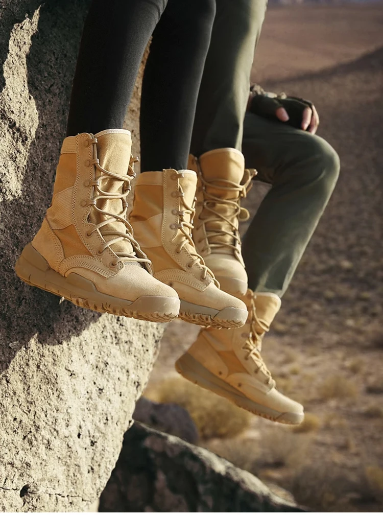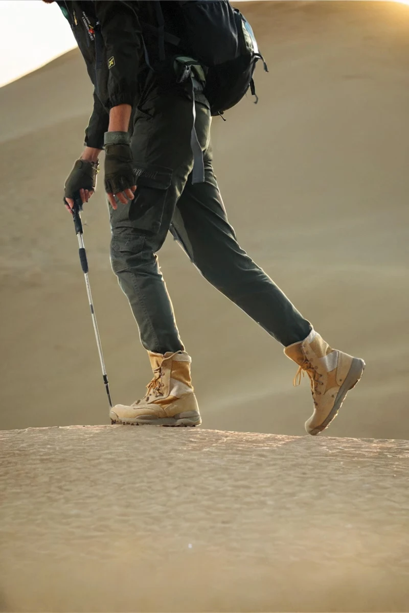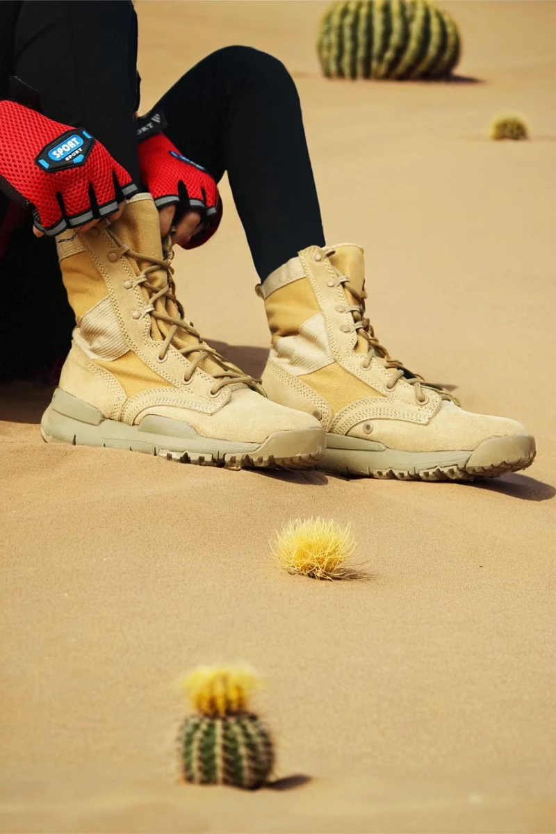 KOWM-zapatos de senderismo para hombre, botas impermeables, zapatos de caza, zapatos tácticos, zapatillas tobilleras de combate en el desierto, botas militares de piel de vaca