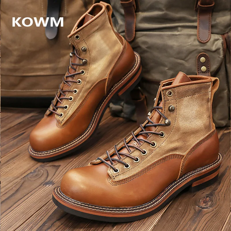 KOWM-zapatos de senderismo de piel de vaca, botas altas para motocicleta, botas de trekking para hombre, zapatillas informales tobilleras británicas, zapatos de trekking de suela gruesa