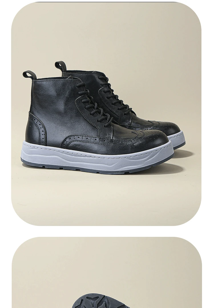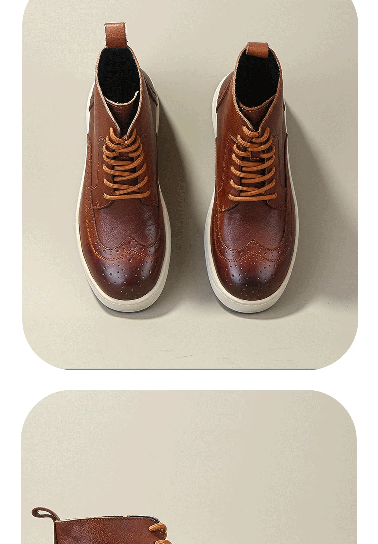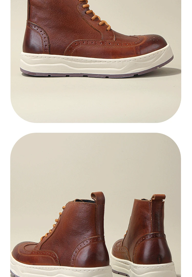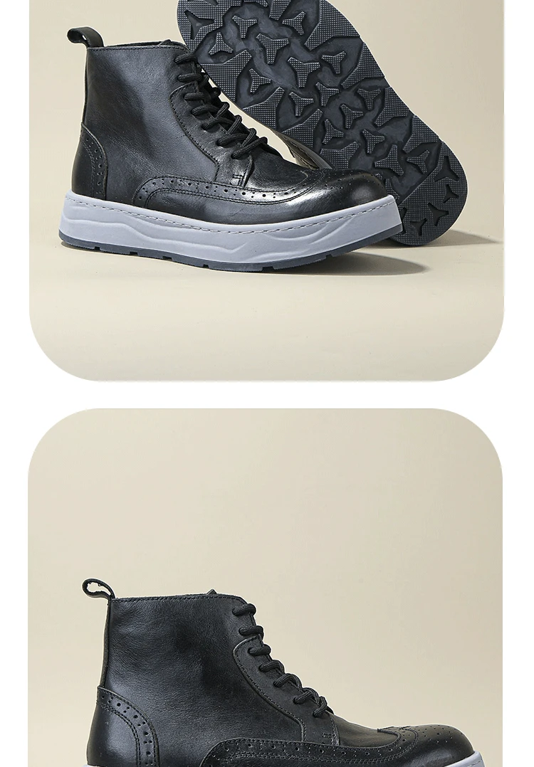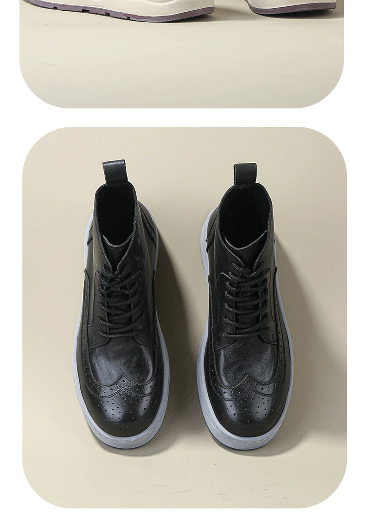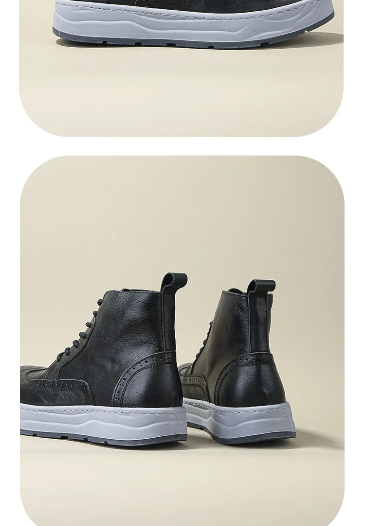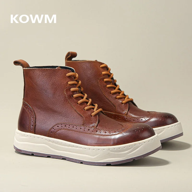 KOWM zapatos de senderismo de piel de vaca, botas para caminar para hombre, botas altas británicas para motocicleta, zapatos de trekking, zapatillas informales con suela gruesa en el tobillo