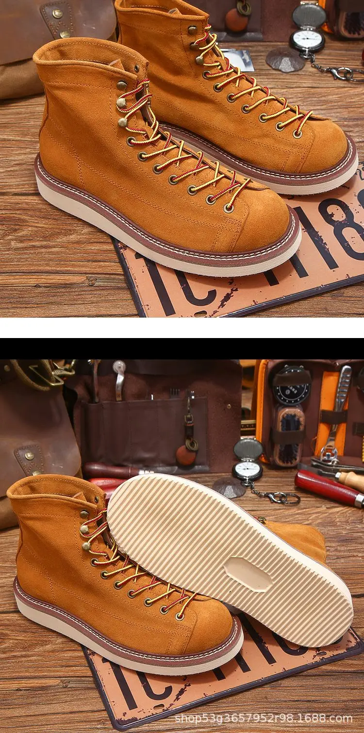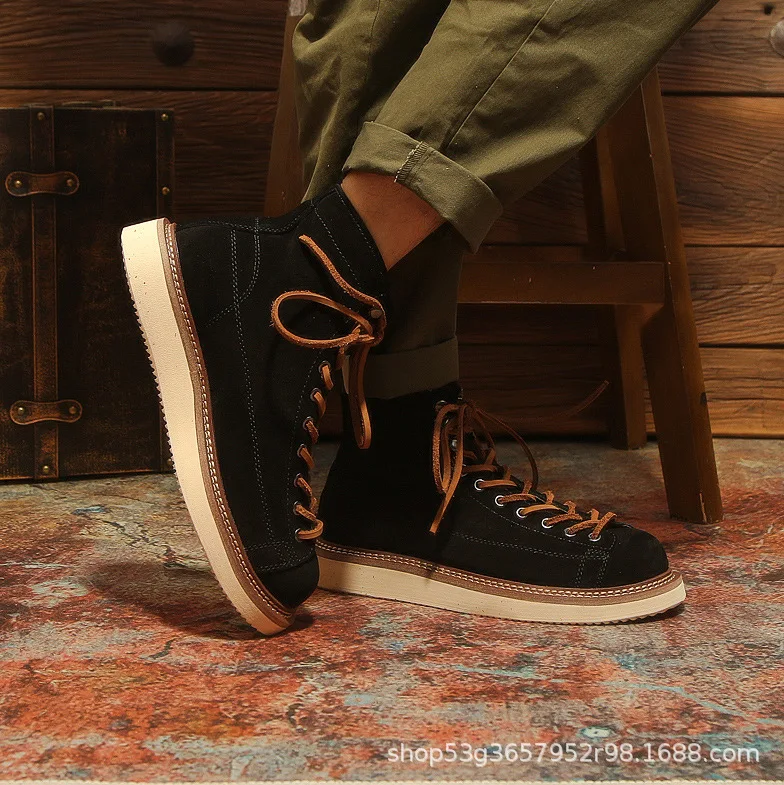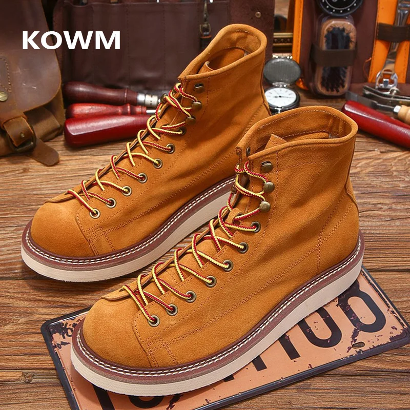 KOWM zapatos de senderismo de piel de vaca para hombre, botas impermeables para caminar al aire libre, zapatillas de deporte para acampar en el desierto, zapatos de Trekking al tobillo, botas de viaje informales