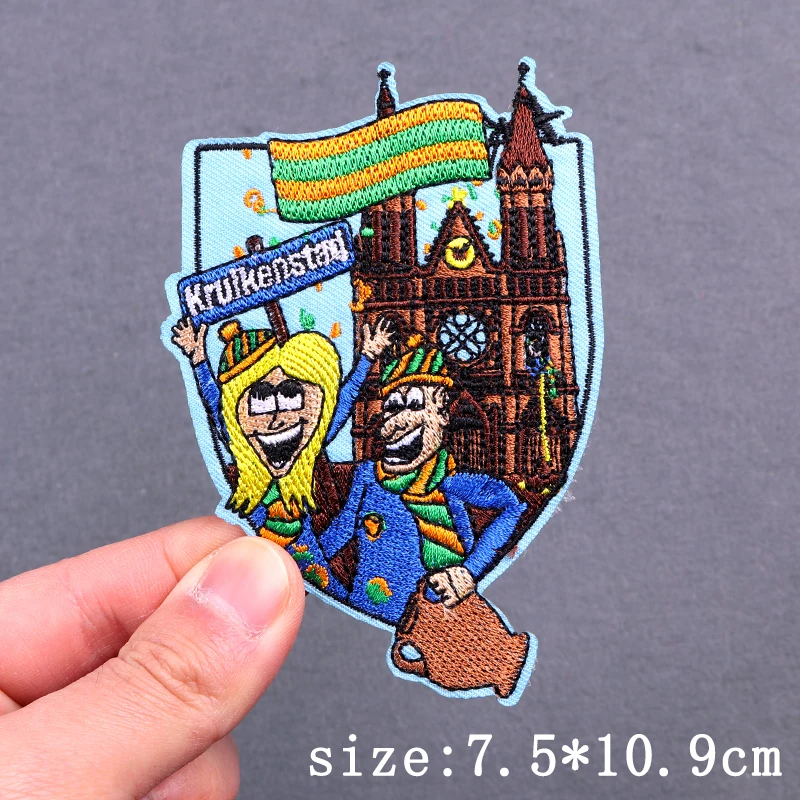 Kruikenstad Carnaval bordado parche hierro en parches para ropa Kruikenstad Peeënrijk cerveza Carnaval parches en ropa insignias