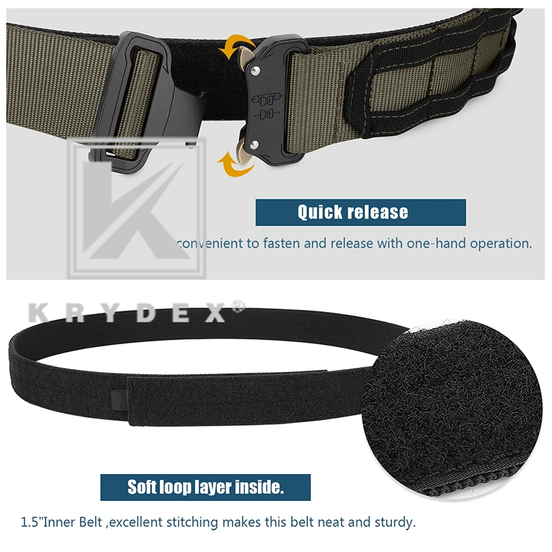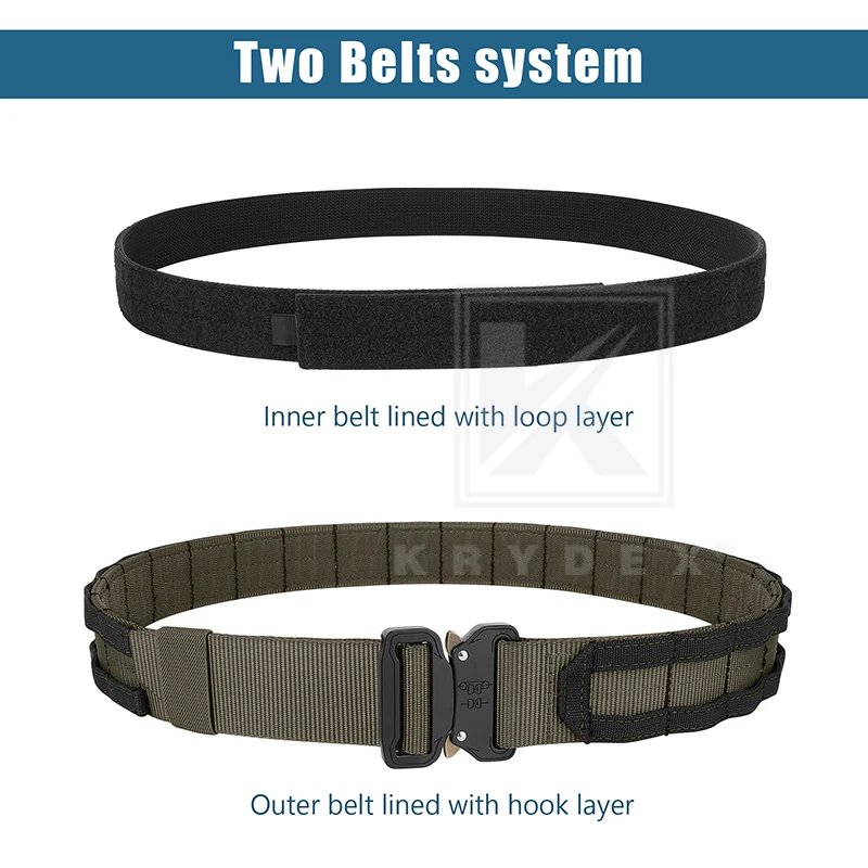 KRYDEX 2 en 1 cinturón MOLLE exterior e interior para hombre 1,75 "y 1,5" hebilla de liberación rápida cinturón táctico Ranger verde + negro