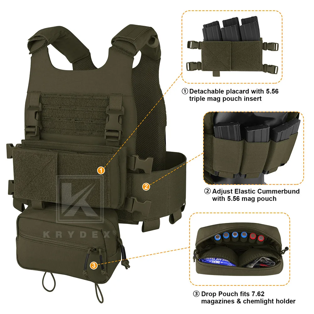 * Bolsillos de placa forrados de malla y acolchado para maximizar la comodidad y la transpirabilidad.