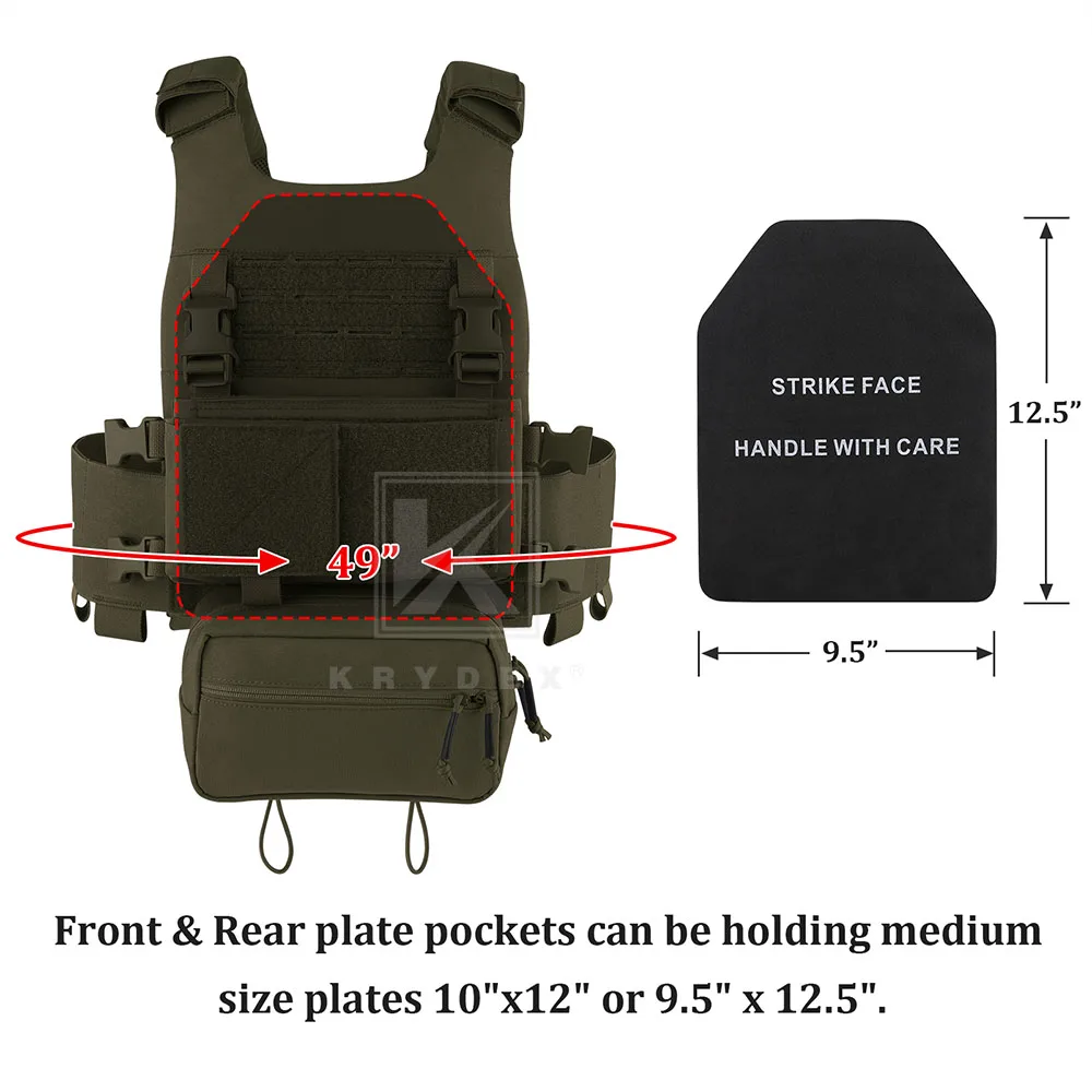 * Los bolsillos delanteros y traseros pueden contener placas de tamaño mediano de 10" x 12" o 9,5" x 12 (EL PLACA DUMMY INCLUYE).