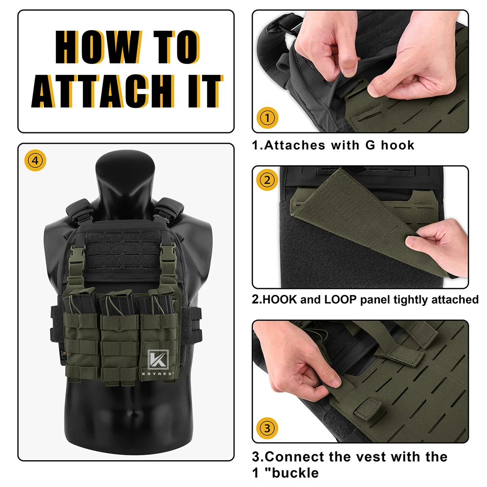 3. Compatible con la mayoría de chalecos tácticos con sistema de adaptación frontal. Por Ejemplo: JPC2.0, FCS, SLICKSTER, V5, etc.