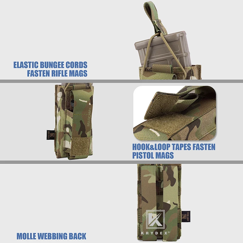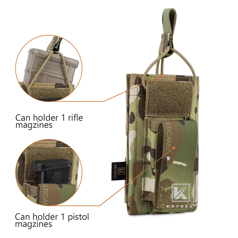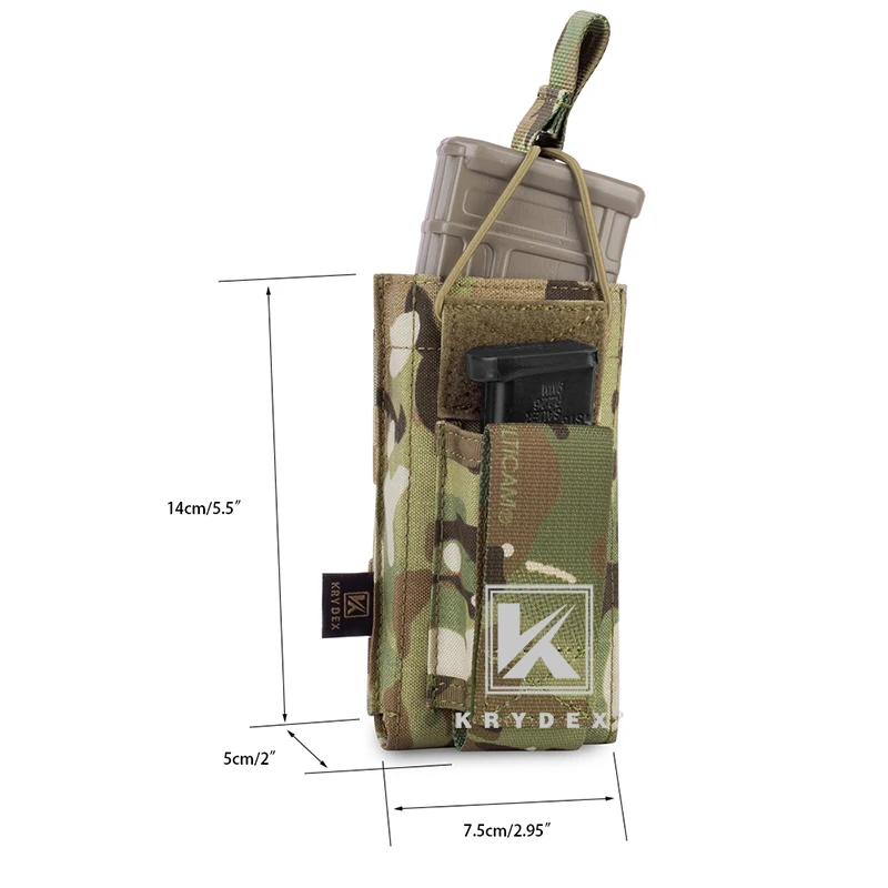 KRYDEX-bolsa para cargador individual, bolsa de 9mm para caza táctica, MOLLE/PALS, 5,56. 223