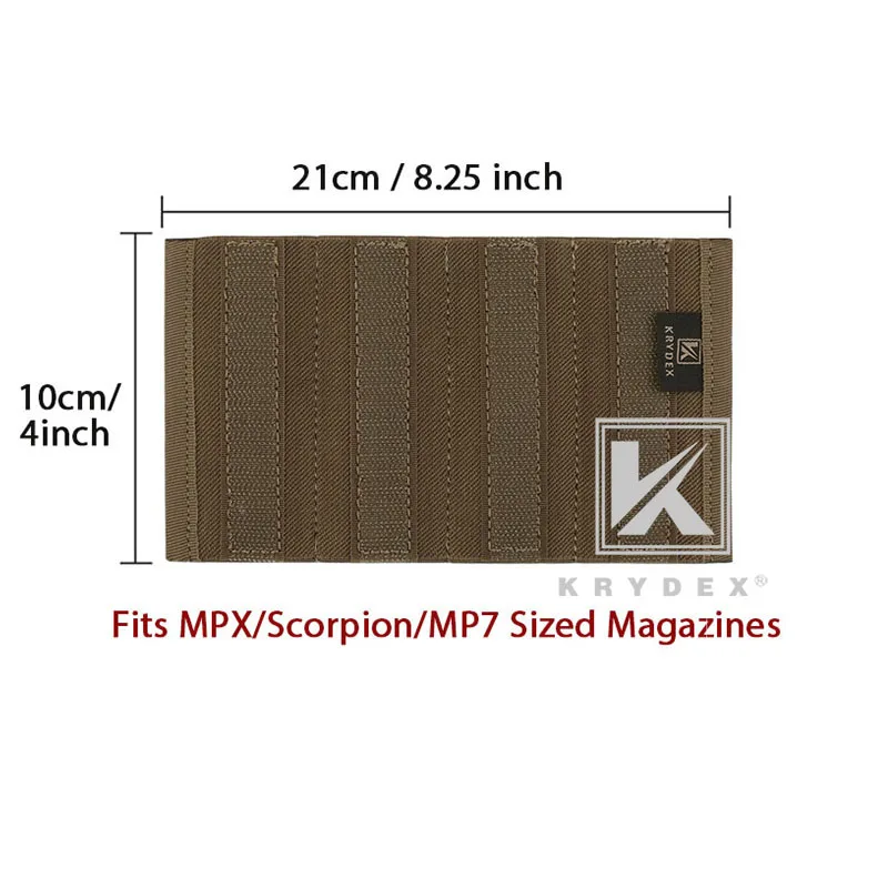 KRYDEX para MP7 Cuádruple Revista Insertar Bolsa 8,25 "* 4" Spiritus Estilo Elástico Incorporado Insertar Revista Titular Coyote Brown