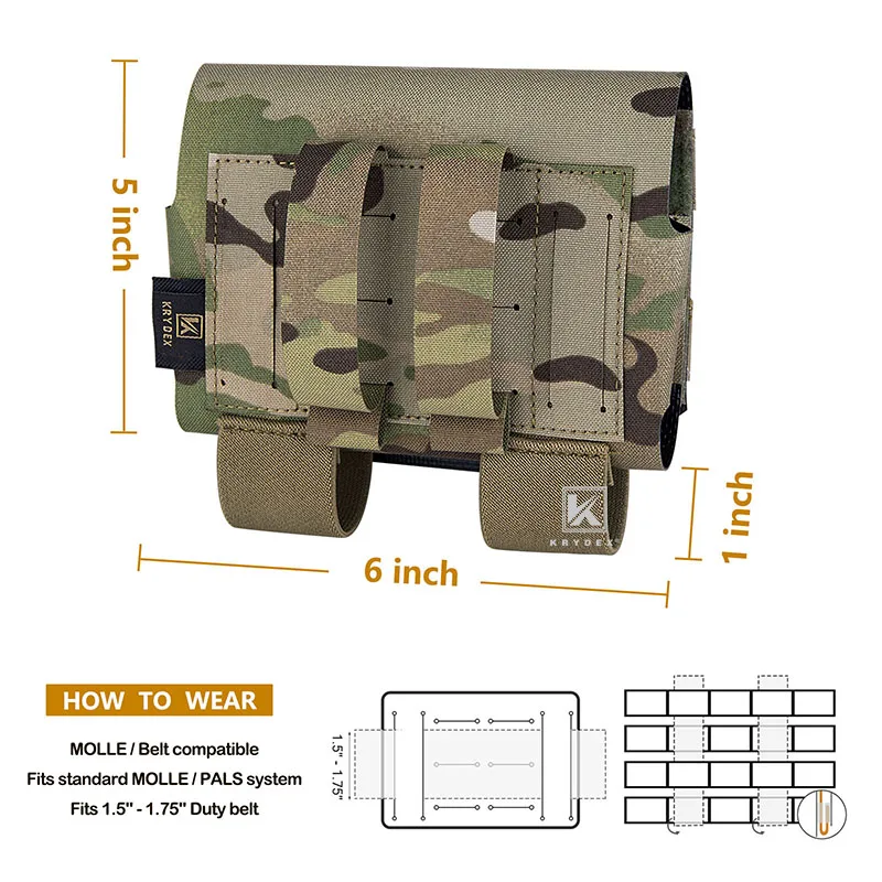 * Compatible con MOLLE/cinturón. Se adapta al sistema MOLLE / PALS estándar y se adapta al cinturón de servicio de 1,5 "-1,75".