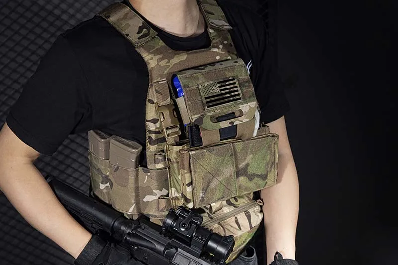 * Solapa de bucle MOLLE frontal con mango de agarre cortado con láser permite engranajes adicionales o parches adjuntos.