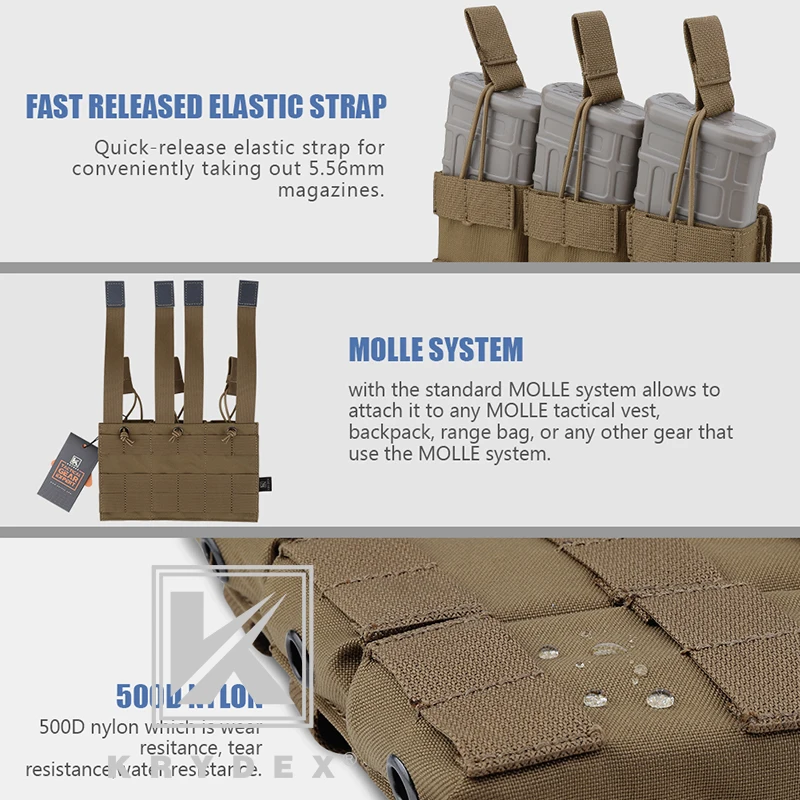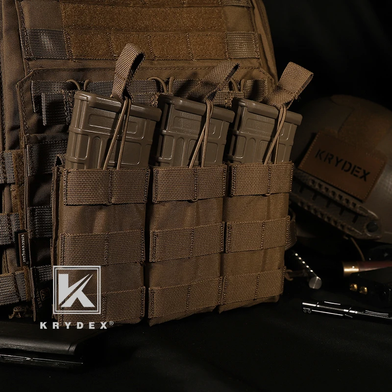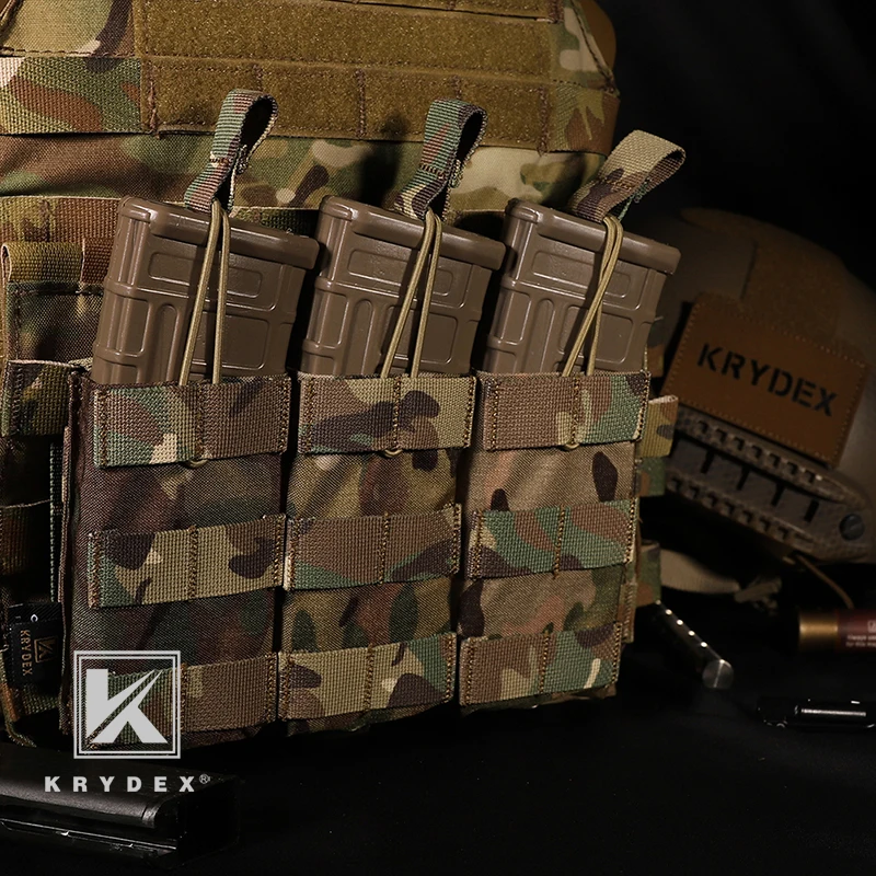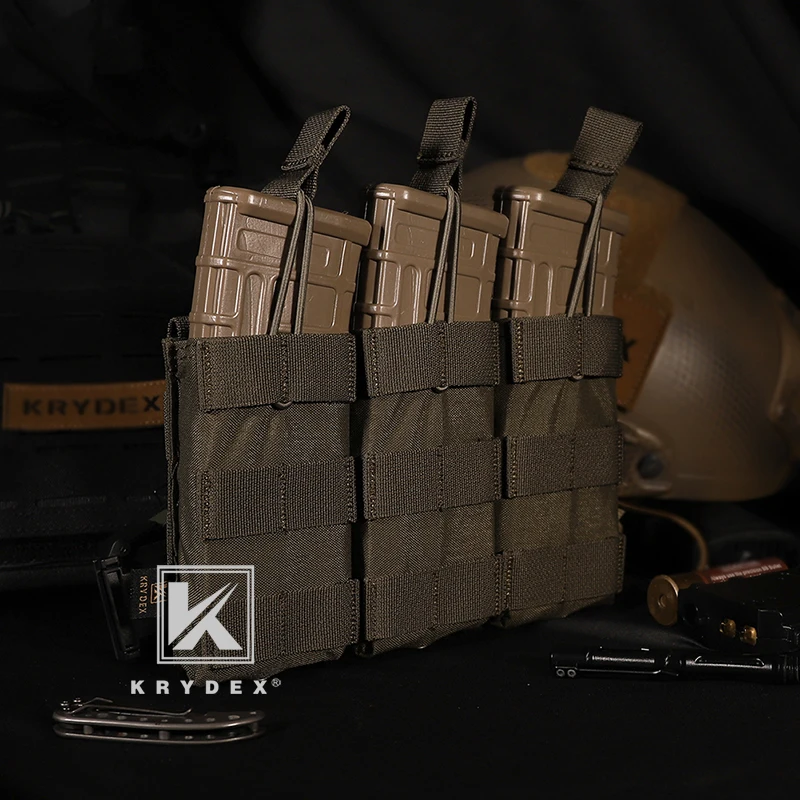 Bolsa de revista triple modular KRYDEX para Rifle de tiro MOLLE táctico con parte superior abierta 5,56. 223 portador de bolsa de revista