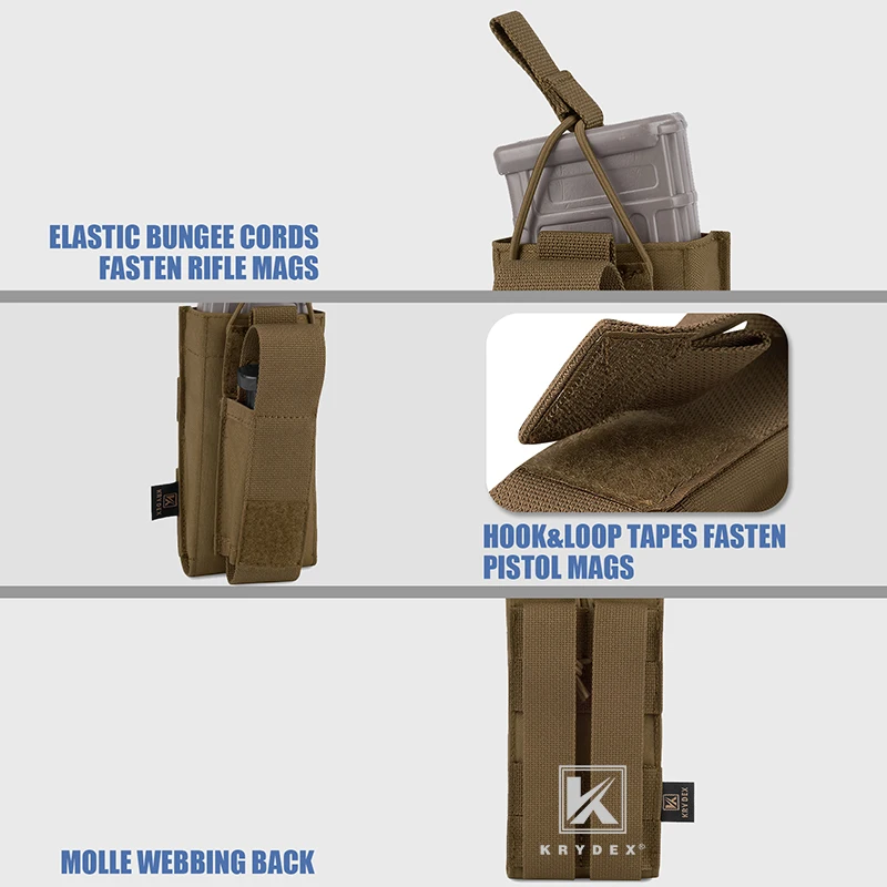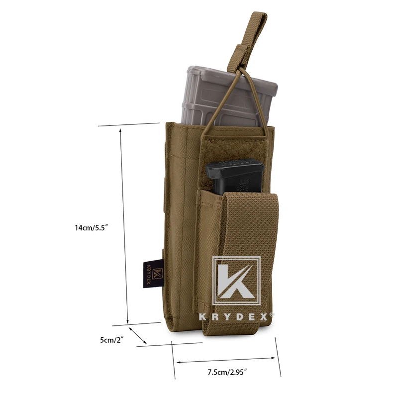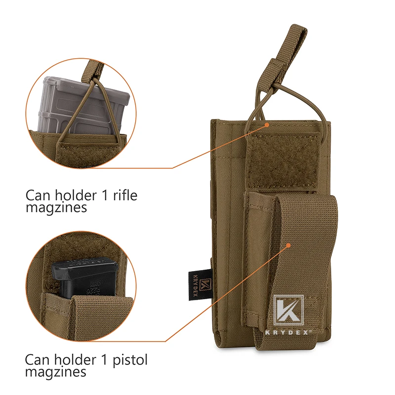 KRYDEX-Bolsa táctica abierta para revistas, y pistola para rifle, revista 5.56.223, solo MOLLE /PALS, portador de revistas, Coyote, marrón