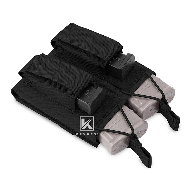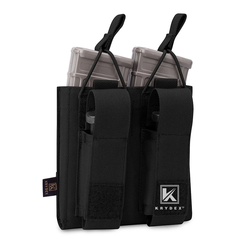 KRYDEX Double Open Top Magazine Pouch For Rifle & Pistol Tactical 5.56.223 MOLLE / PALS Magazine Pouch Carrier Black