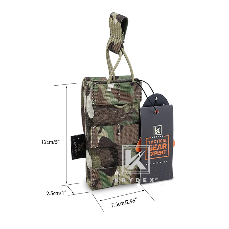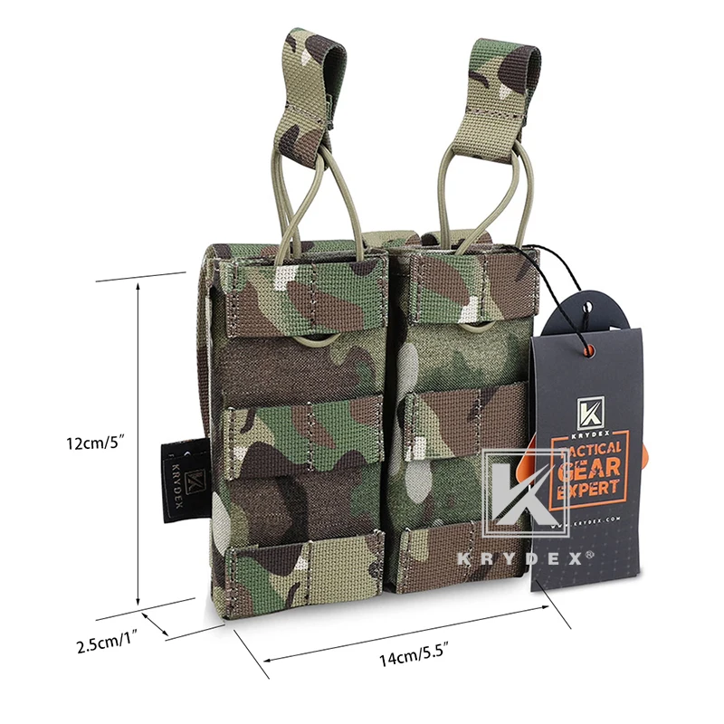 * Modular triple open top design w/ shock cord pull tabs for easy access to magazines.* Front PALS webbing for adding additional MOLLE pouches / accessories.* Compatible w/ standard PALS webbing.* Size: 22cm x 13cm / 8 3/4" * 5 1/8".* Color: BK,MC,CB,RG* Brand : KRYDEXPackage Contents:KRYDEX 5.56 Open Top Mag Pouch * 1