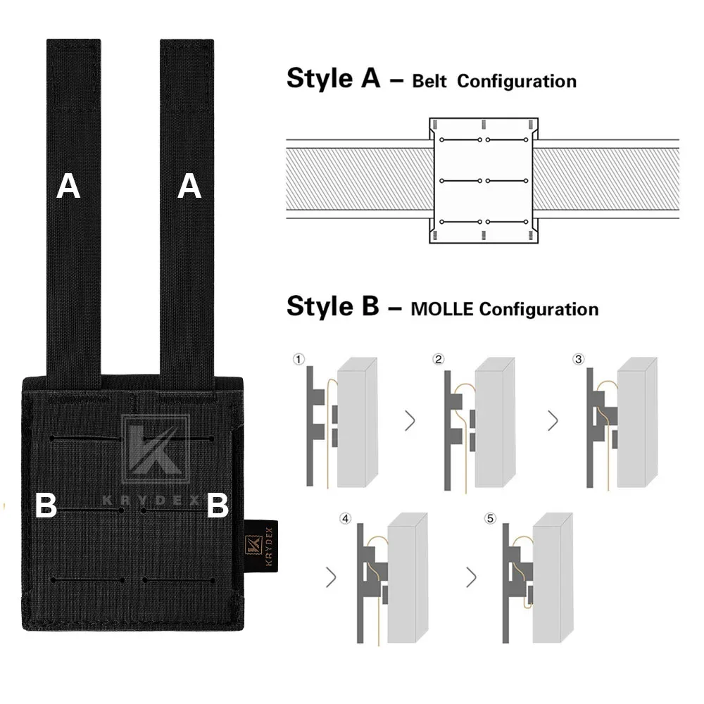 2. Sistema de adaptación dos en uno. Compatible con PALS / MOLLE y cinturón. (Hasta 2 ”de ancho de correa)