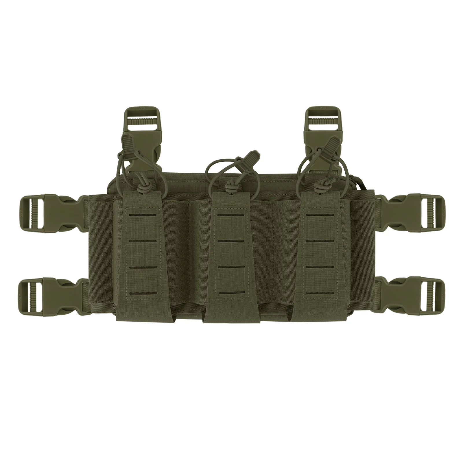 * Se puede configurar como un aparejo tórax completo: equipado con seis hebillas desmontables para sujetar fácilmente las correas para los hombros y la espalda (se venden por separado), lo que permite una configuración minimalista de equipo tórax de carga de alta velocidad.