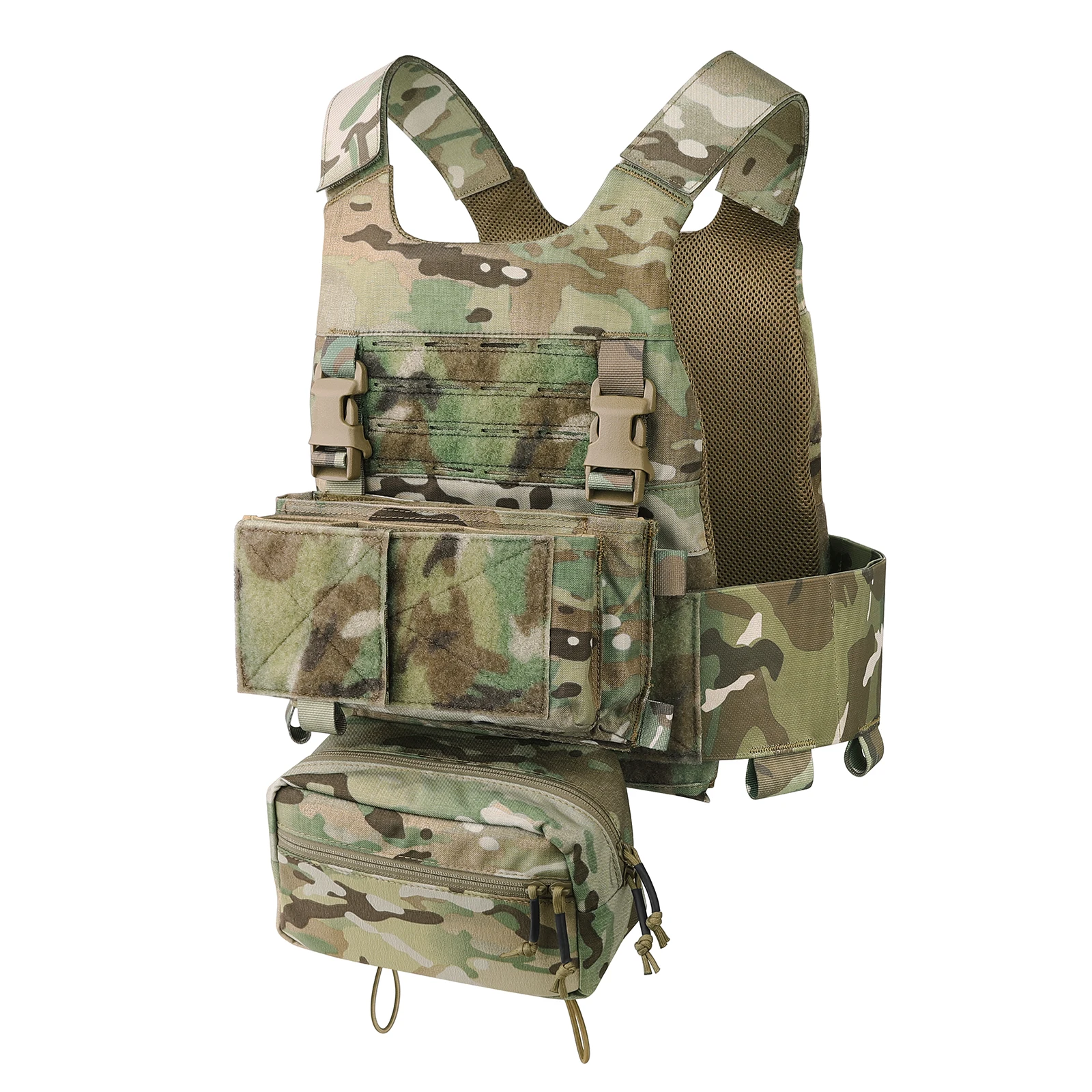 * Bolsillos de placa forrados de malla y acolchado para maximizar la comodidad y la transpirabilidad.