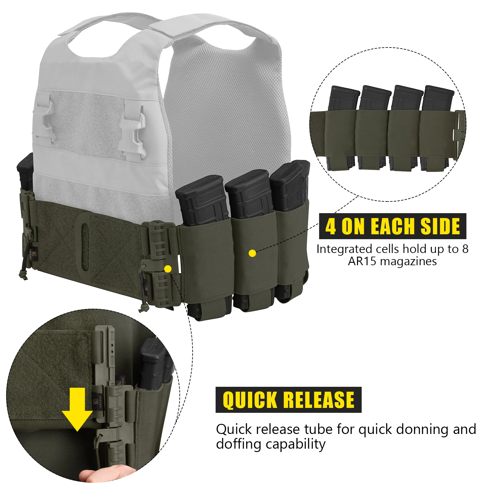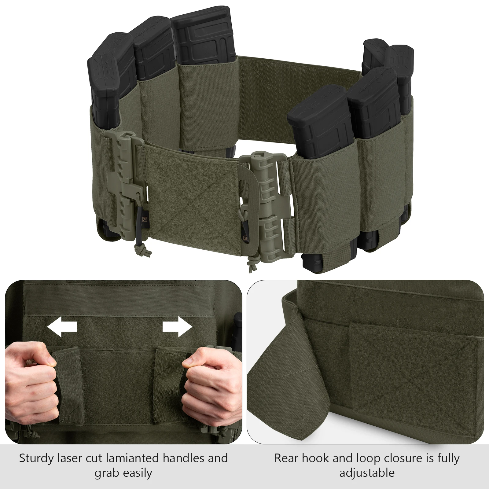 * Fajín elástico táctico compatible con la mayoría de los soportes de placa que tienen accesorio de bucle para un fajín. Por ejemplo: JPC, CPC, LBT, LBX, FCPC, Slickers, etc.