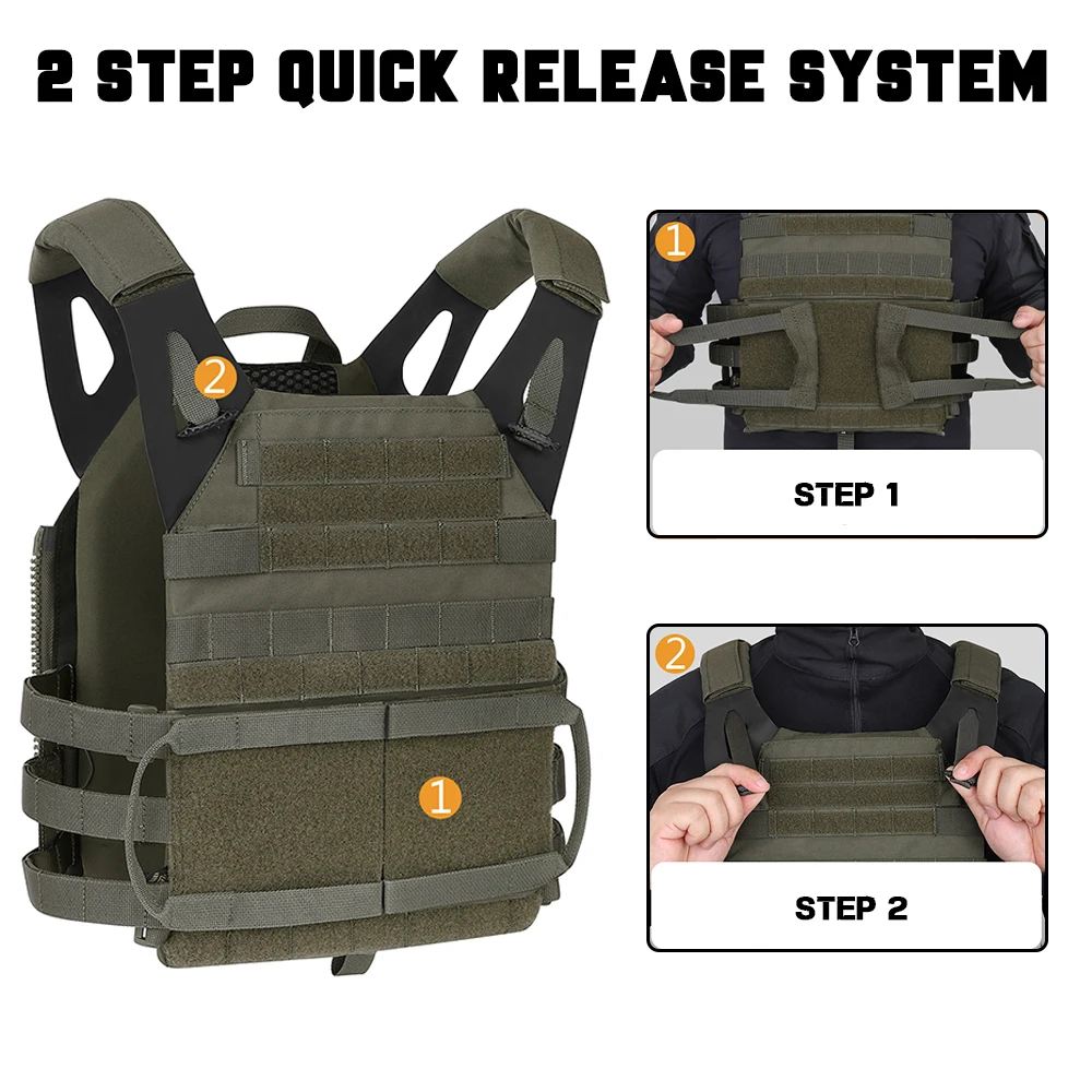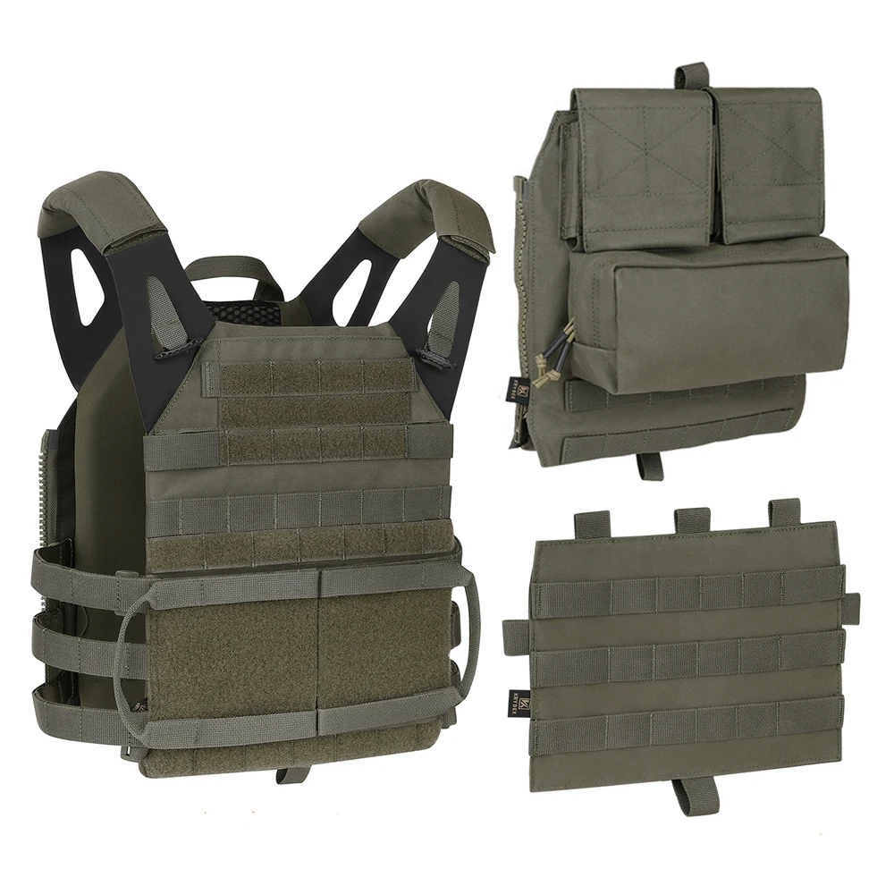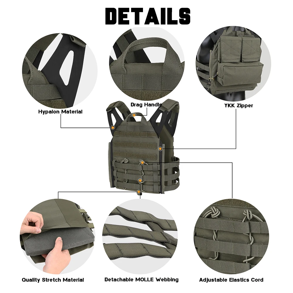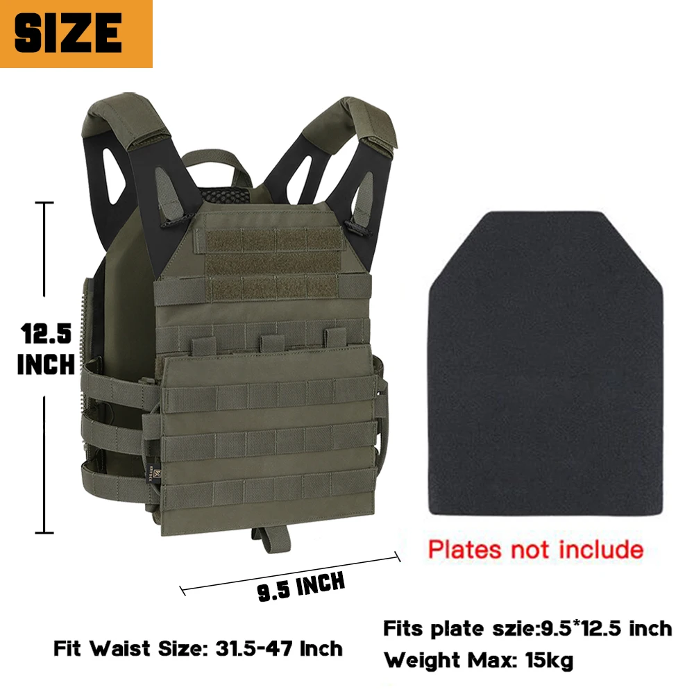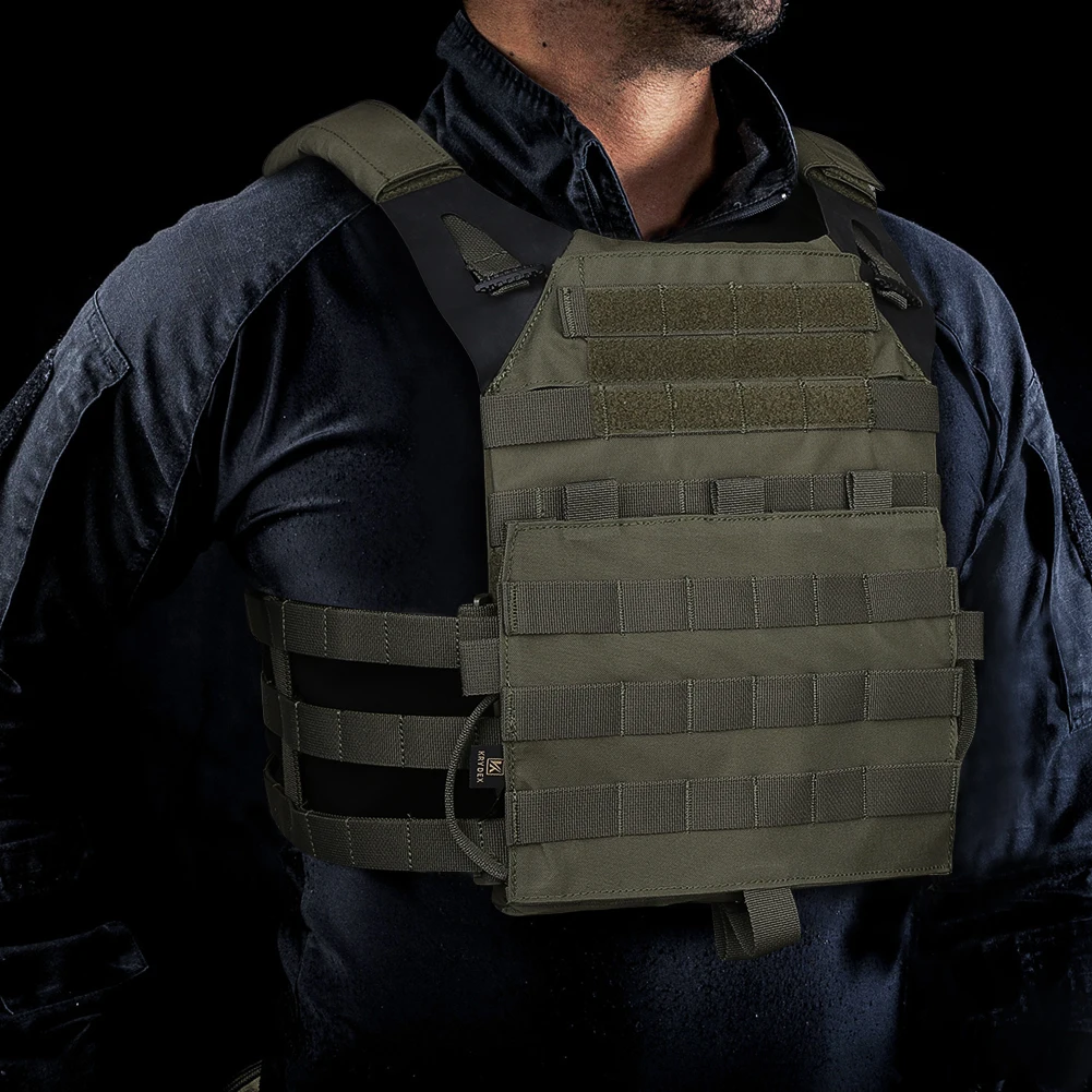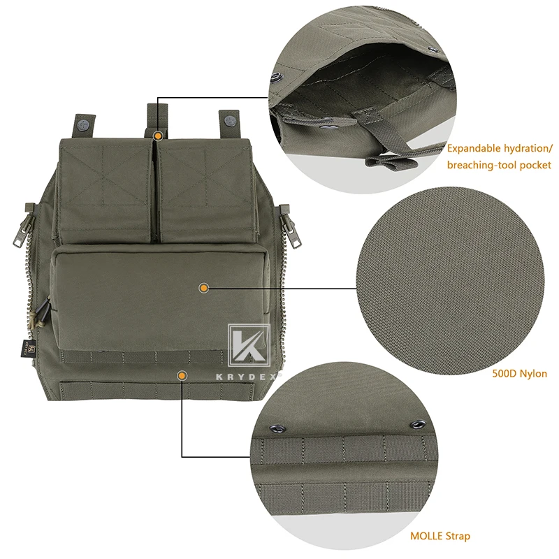 * Material de nailon Cordura 500D, impermeable y duradero.* Chaleco blindado ligero y minimalista diseñado para máxima movilidad, ahorro de peso y empaquetabilidad.* Ofrece una variedad de opciones de configuración para satisfacer las necesidades de un operador en términos de protección, modularidad y comodidad.* Fácil capacidad de extracción de emergencia en 2 pasos.* Incluye solapa MOLLE frontal desmontable.* Accesorio para fajín de perfil bajo que proporciona máxima capacidad de ajuste y permite la expansión del pecho según sea necesario.* Las correas verticales ocultas en el soporte delantero admiten aparejos de pecho desmontables.* Correas en la parte posterior de las correas de los hombros para soportar los paneles traseros.* Cremalleras a lo largo de los lados del soporte trasero para paneles con cremallera.* Tamaño de la placa protectora de ajuste: M Tamaño: 9,5" x 12,5" o L Tamaño: 10,25" x 13,25".(Los platos no incluyen, se venden por separado).Mochila :* Material de nailon Cordura 500D, impermeable y duradero.* Paquete simple y versátil que se cierra a la placa trasera y se estira para guardar suministros esenciales.* Cuenta con un bolsillo expandible de hidratación/cortador de pernos incorporado.* Viene con seis bolsas para revistas y una bolsa para accesorios en la parte delantera.* Compatible con la mayoría de los chalecos.* Corresponde con el tamaño de la bolsa de plástico.Contenido del paquete:* Conjunto de mochila tipo chaleco táctico Krydex + paquete con cremallera en panel * 1