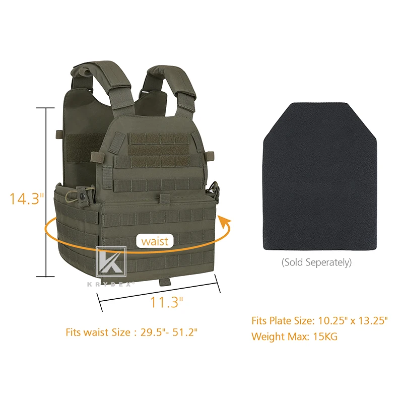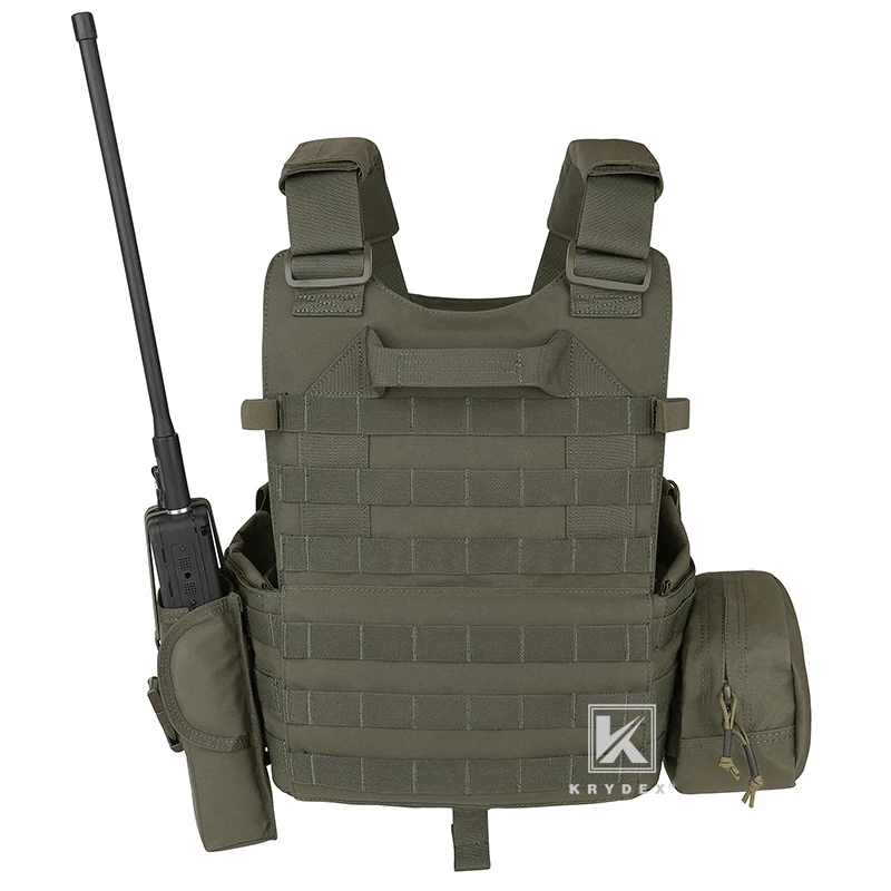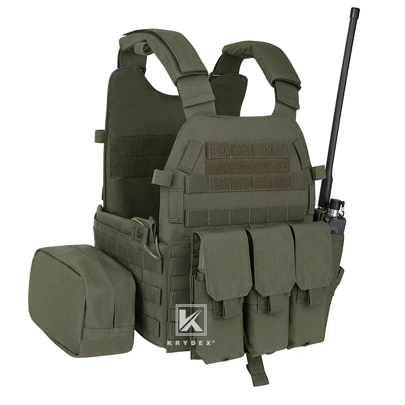 KRYDEX-Chaleco Táctico de Airsoft para Caza, Portador de Placa MOLLE, Modular de Batalla, con Triple Mag, Radio, Bolsa de Descarga, Ranger, Verde, para el 2017
