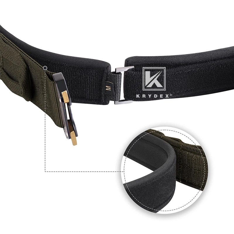 KRYDEX, cinturón interior acolchado de 1,5 ", cómodo cinturón interior de nailon con forro de bucle, cinturón interior de tiro de batalla negro para cinturón de 1,5" a 2"
