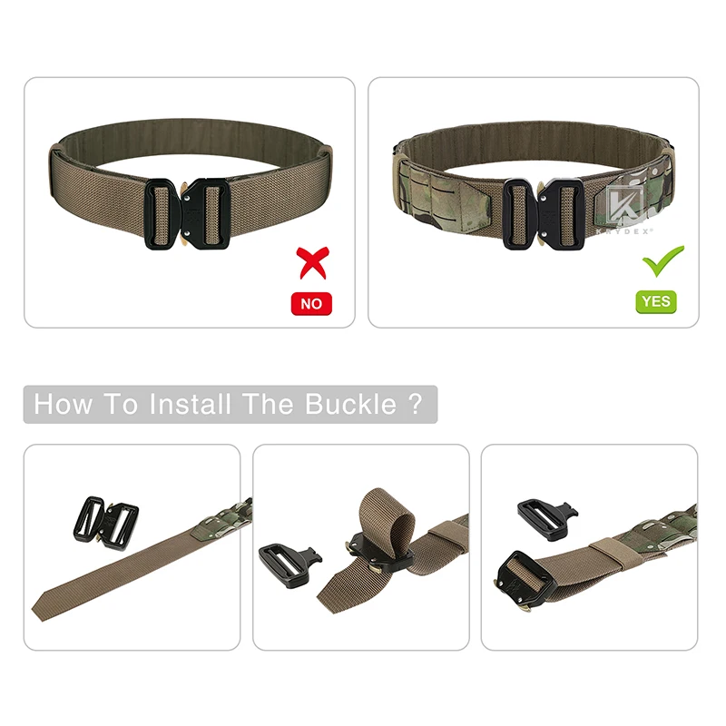 * 1.5" inner belt with loop layer easily get through most pants waist loop and compatible with most tactical belt with hook inside.