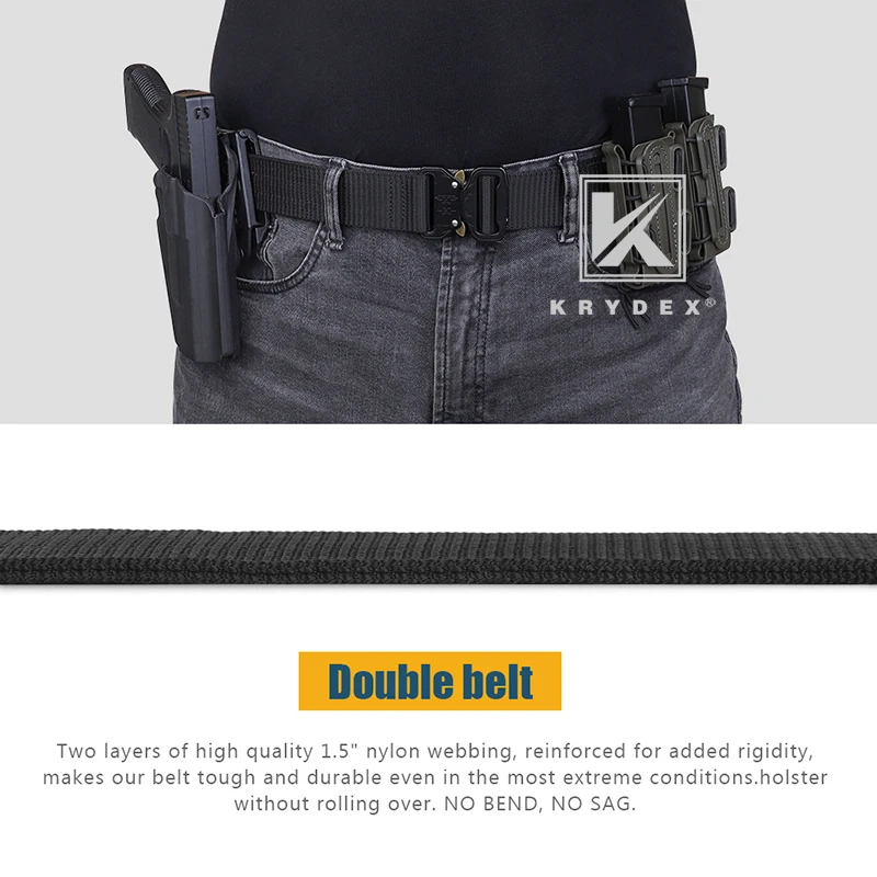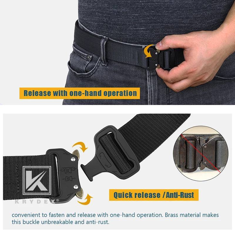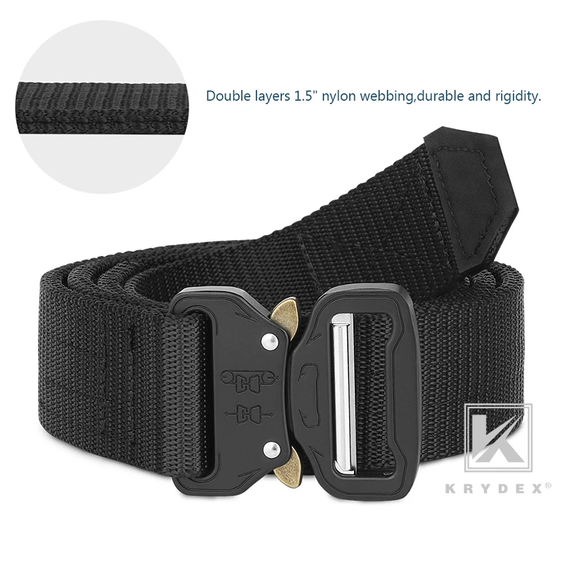 KRYDEX Cinturón de 1,5 "Tamaño M Rigfened 2-Ply Correa de nailon de liberación rápida Cinturón de trabajo de aparejo de metal para tácticas Caza Tiro