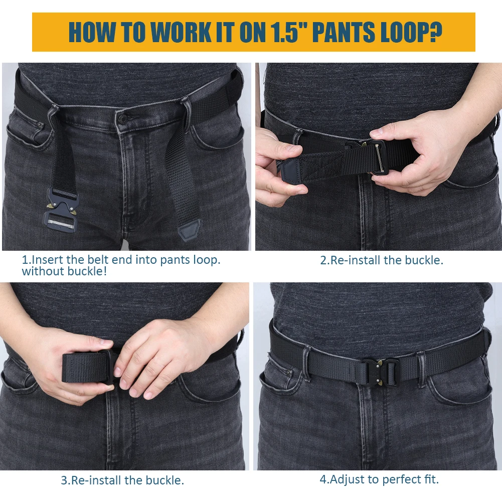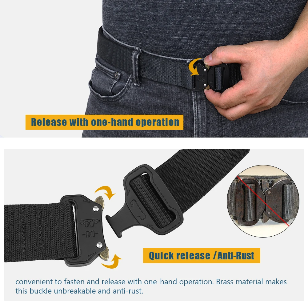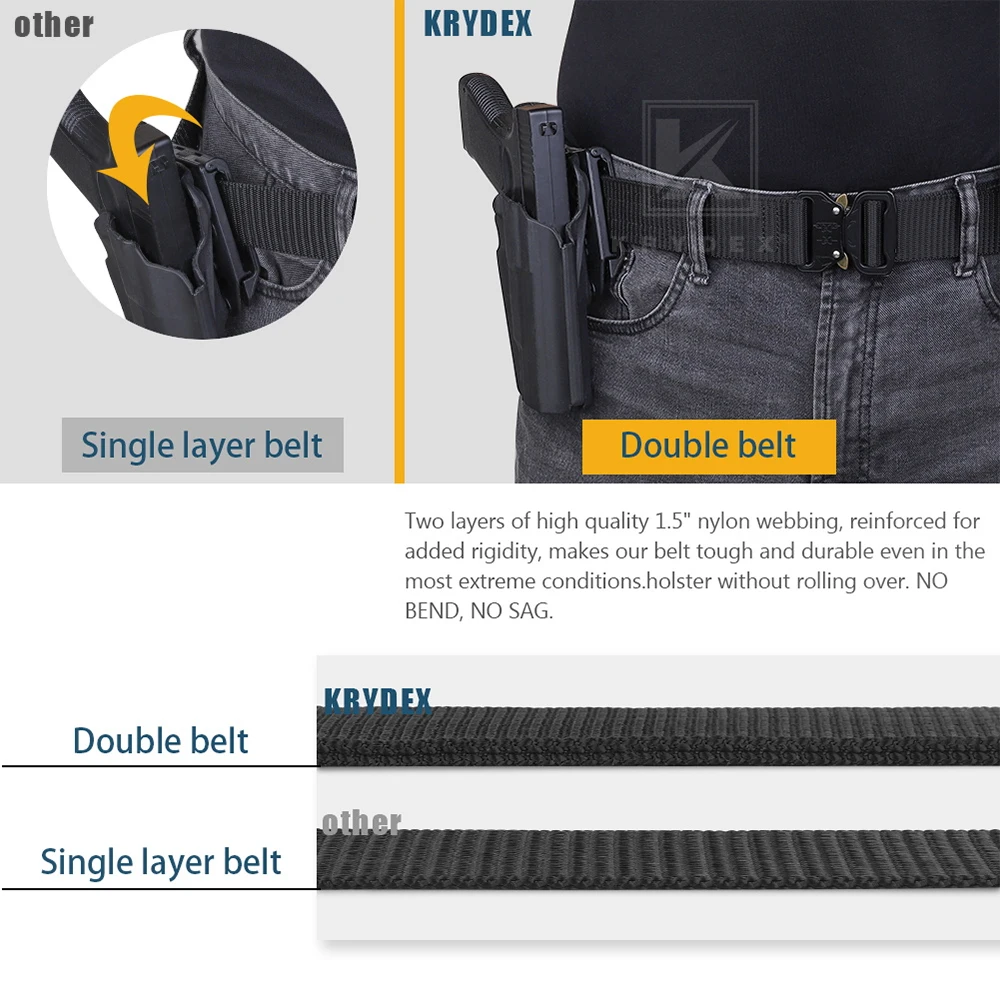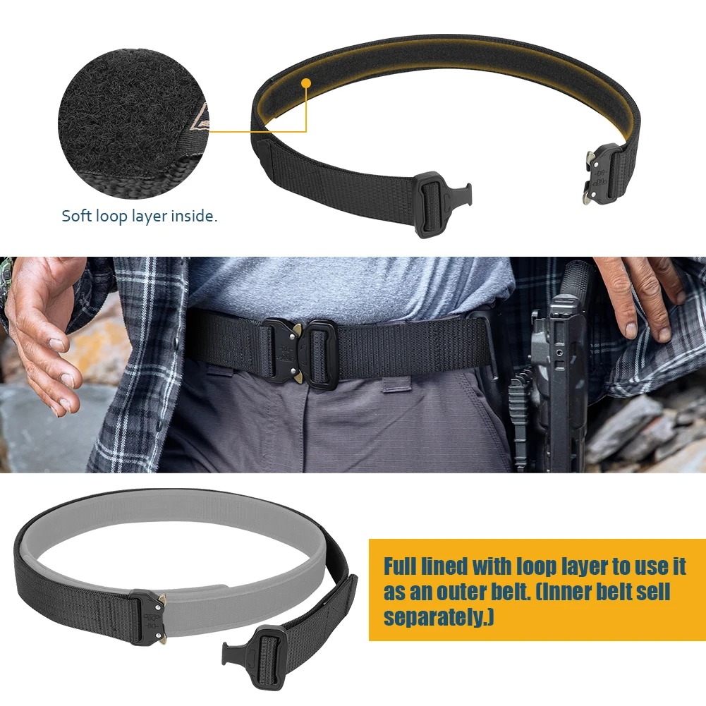 KRYDEX cinturón de servicio de aparejo de 1,5 pulgadas, gancho y bucle táctico, tiro de caza de liberación rápida, correas de nailon de 2 capas reforzadas, cinturón con hebilla de Metal