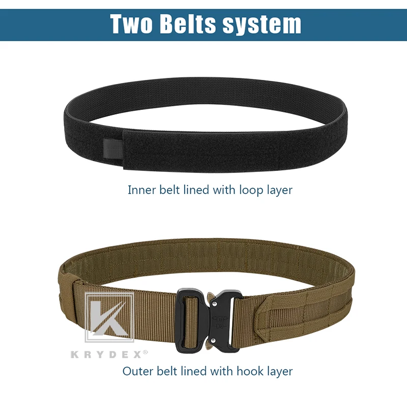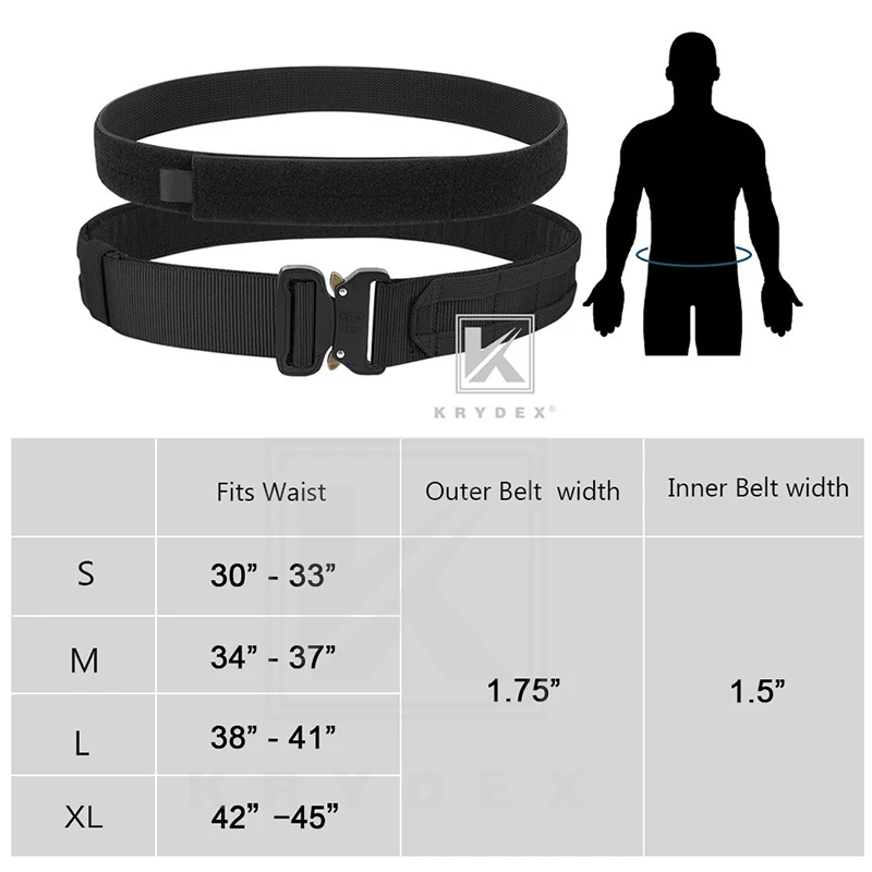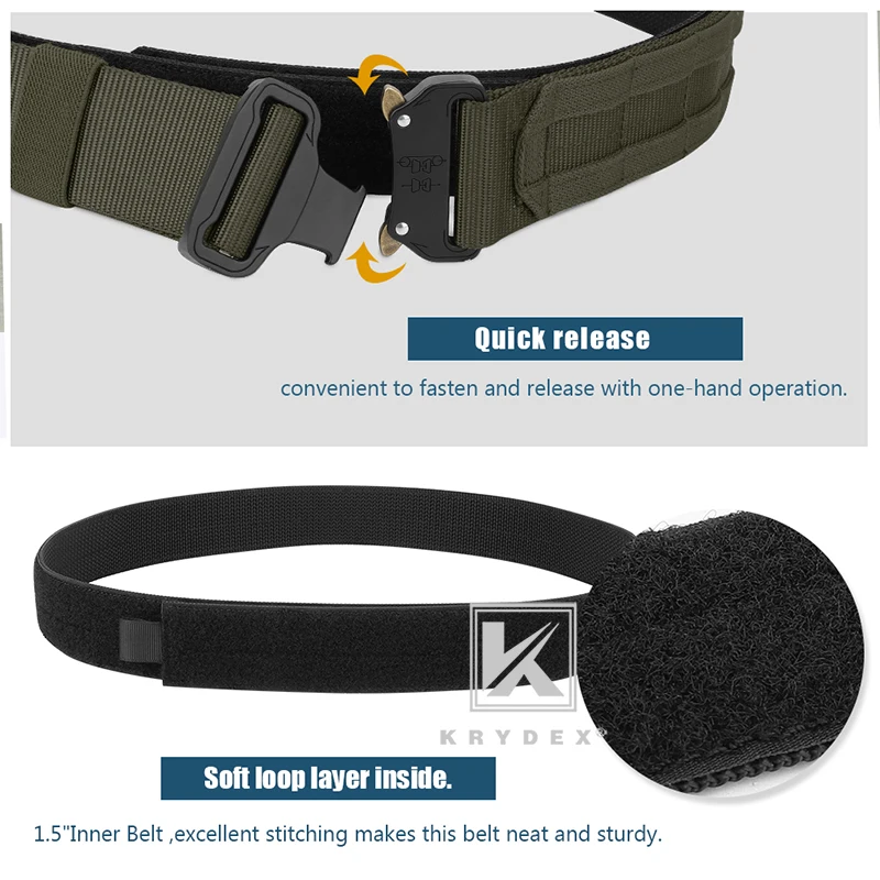 KRYDEX 1.75" y 1,5" cinturón táctico Rigger Duty 2 en 1 cinturón MOLLE de liberación rápida exterior e interior para caza y tiro al aire libre