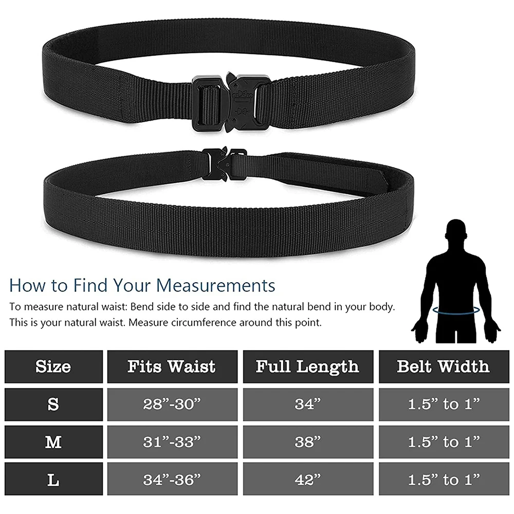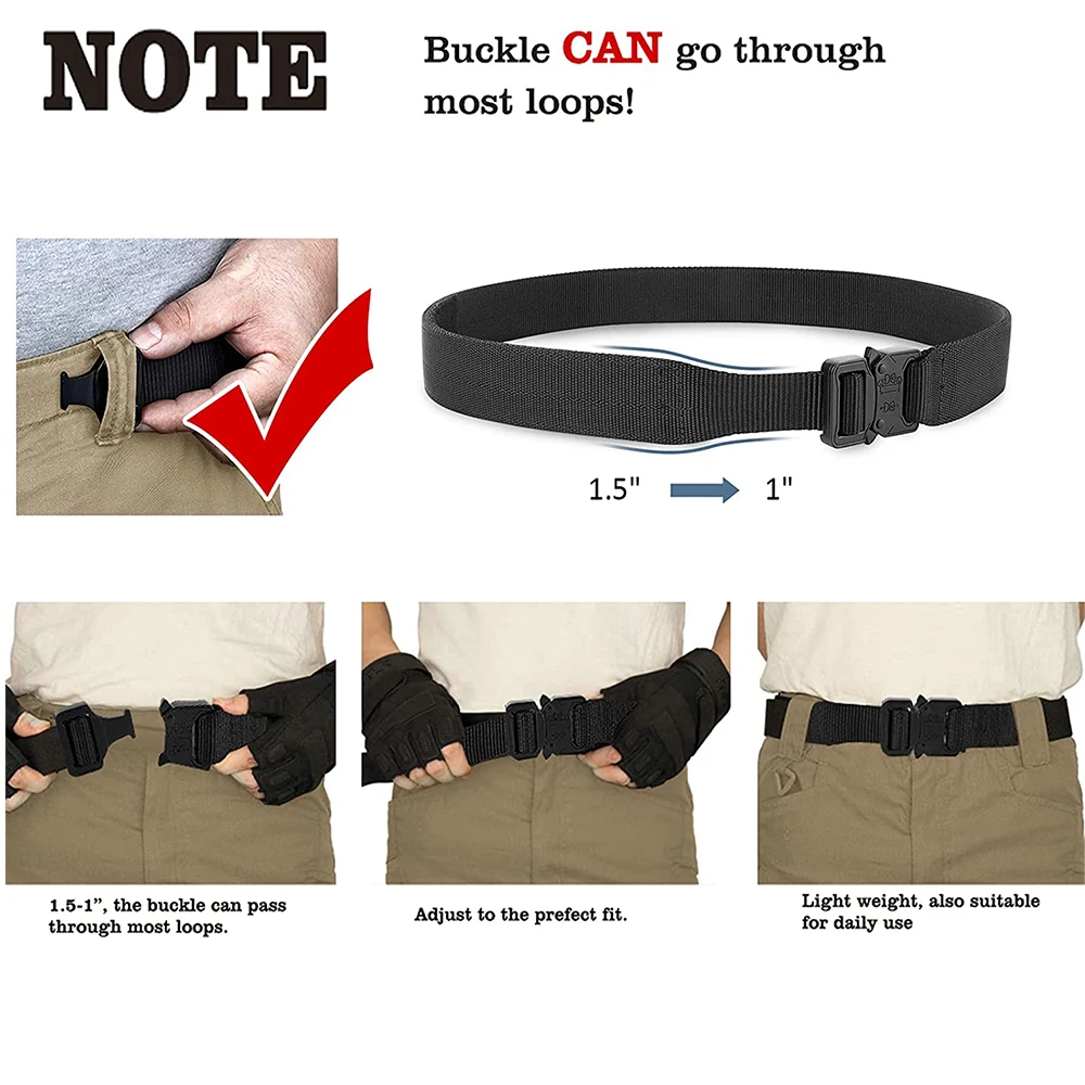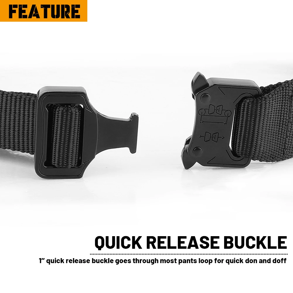2. La brinda una hebilla de metal de liberación rápida capacidad de sujeción/separación conveniente e instantánea, el tamaño de la hebilla se ajusta a través de los lazos del cinturón/pantalón.