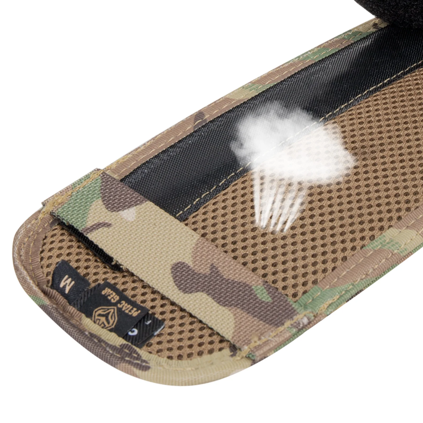 • Diseño de malla y acolchado para mayor comodidad. Sistema de fijación de gancho de inyección interno que puede ser utilizado por una correa regular con capa de bucle en el exterior.