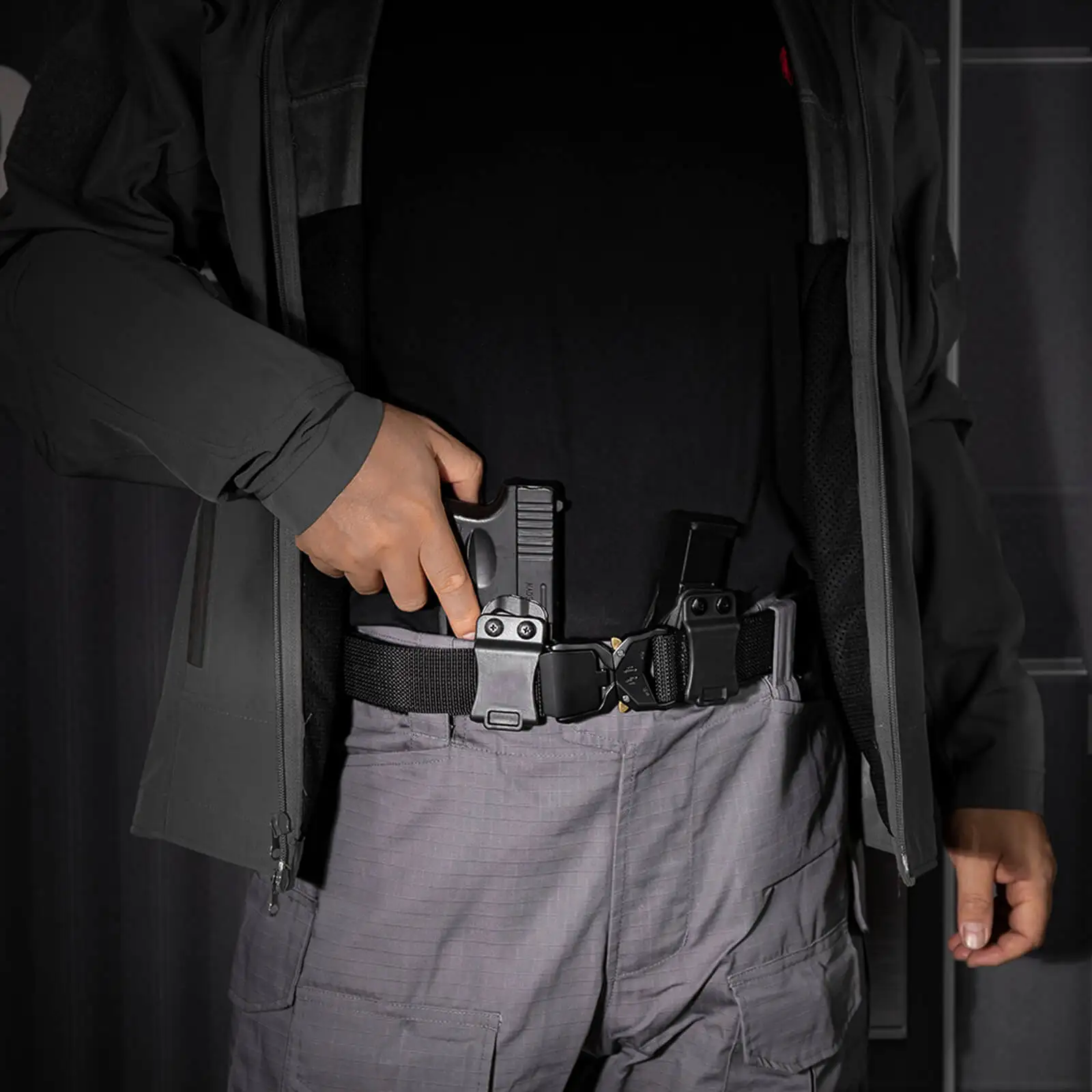 * Pide tu cinturón según la talla de pantalón que uses.Te recomendamos que elijas la talla más grande si tu cintura está entre dos tallas o necesitas colgar más equipos tácticos en tu cinturón de combate.Especialmente cuando el cinturón se utiliza como cinturón de transporte oculto.