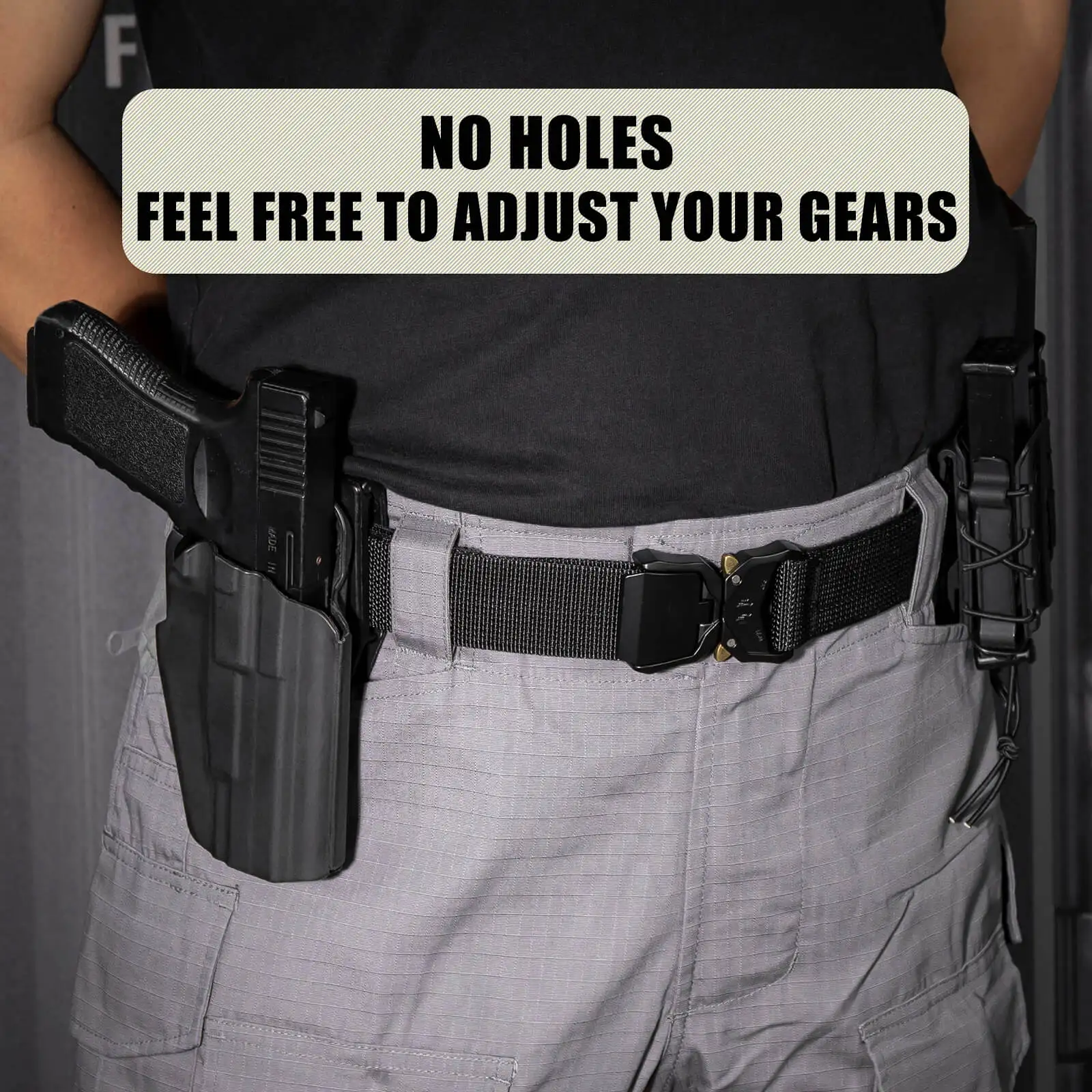 * Cinturones tácticos de 1,5" de ancho que pasan fácilmente los bucles de los jeans.Y el diseño sin agujeros le permite ajustar la posición del equipo táctico a voluntad.