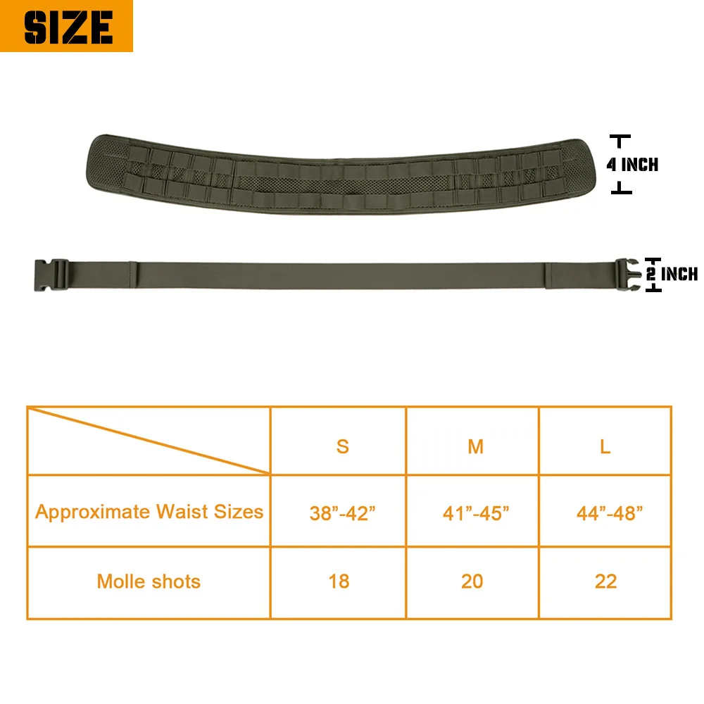 2.El cinturón de batalla táctico, el sistema dos en uno y el cinturón exterior e interior pueden ser separables.Ancho del cinturón exterior 4", Acepta cinturón interior de hasta 2 1/2" de ancho.El cinturón interior de 2" incluido es reemplazable.