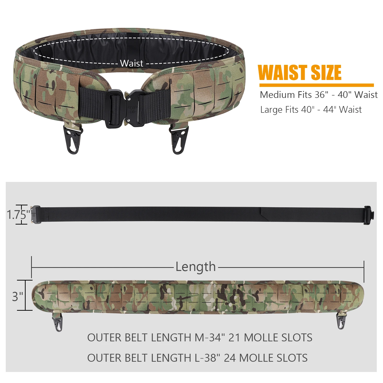 - Tamaño mediano para cintura de 36" - 40", Molle cortada con láser x 21 ranuras;