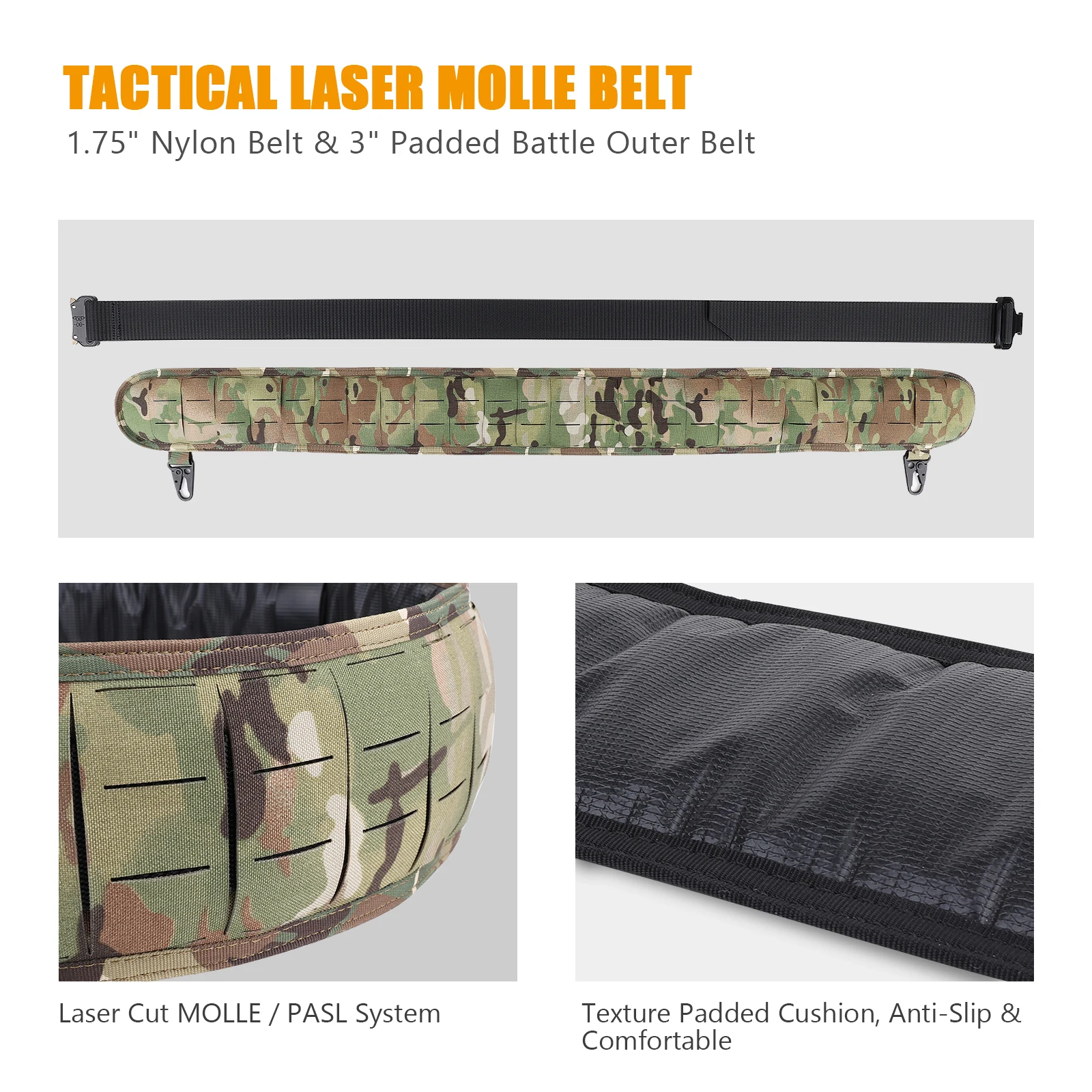 * Cinturón de nailon de 1,75" y cinturón exterior de batalla acolchado de 3" incluidos como un juego completo.Ambos se pueden utilizar individualmente.