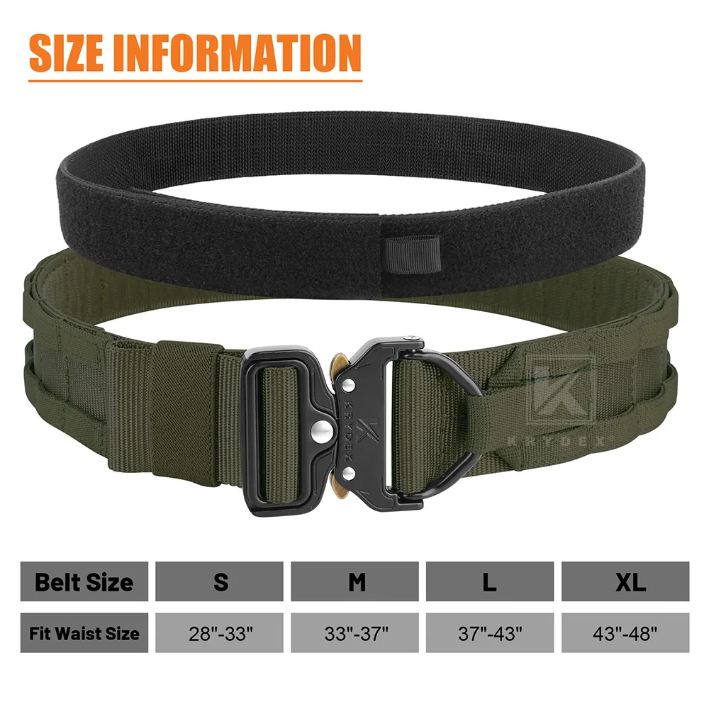* Sistema de dos cinturones: cinturón exterior de 1,75 "de ancho, cinturón interior de 1,5" de ancho.