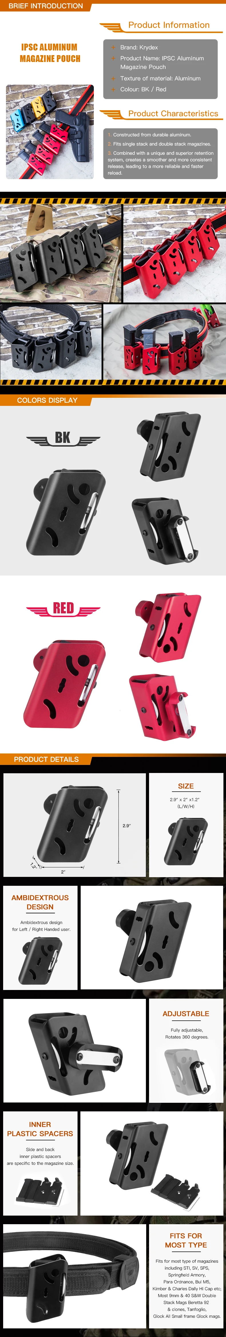 KRYDEX-funda de aluminio IPSC, bolsa roja para revistas Mag USPSA, competición, disparo, ajuste de múltiples ángulos, tirador de velocidad, carrera de pistolas