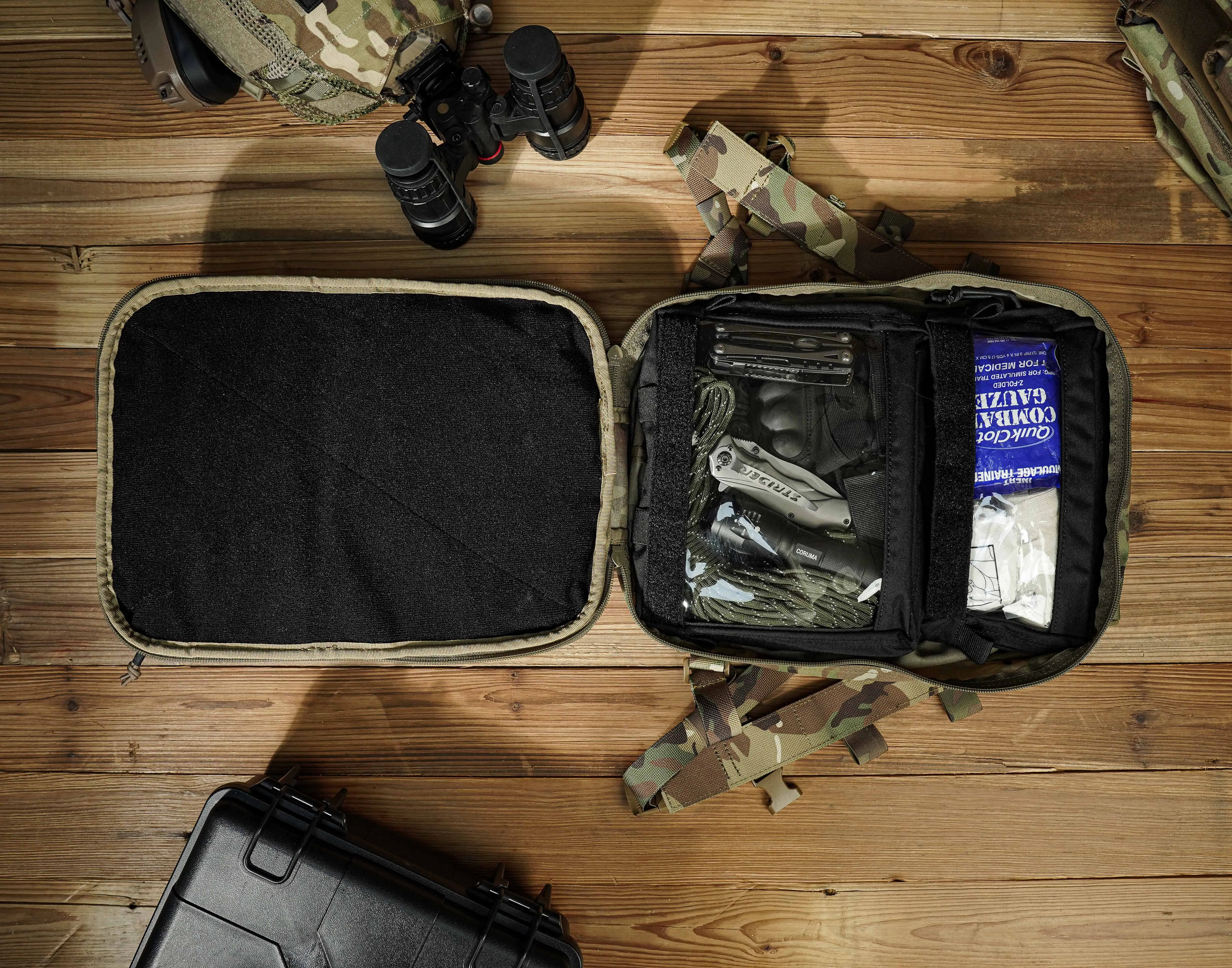 * Panel de gancho trasero diseñado para su uso en todas las mochilas, siempre que tenga un panel de bucle para sujetar.