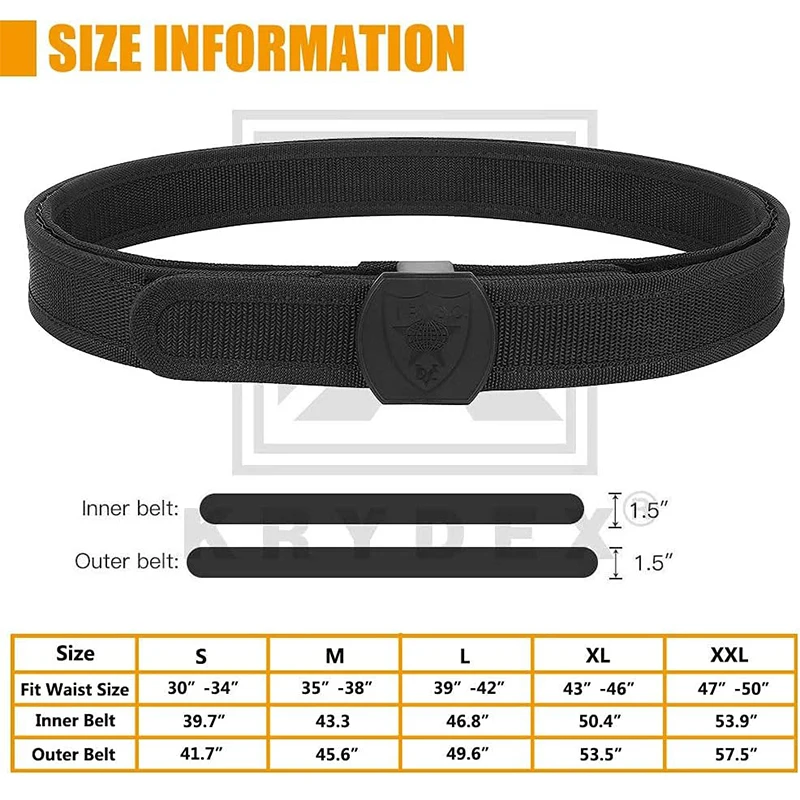 【Calidad superior】El cuerpo de nailon reforzado lo hace duradero y confiable.【Múltiples tamaños】5 tamaños disponibles de 32” a 52”, ancho de competencia 1,5”, para adaptarse a todos los equipos de tiro utilizados.【Fijación segura】Fije las fundas y la bolsa de cargadores de forma segura mientras corre y salta.【Sistema de dos cinturones】 Diseño especial de sistema de 2 cinturones, un cinturón interior a través de presillas para pantalones y un cinturón exterior adjunto, lo que le ahorra la molestia de quitar las fundas y bolsas del cinturón exterior.【Amplia aplicación】Accesorios perfectos para uso deportivo de airsoft, paintball e IPSC.【Diseño más grueso】 El cinturón IPSC es más grueso que la mayoría de los demás, por lo que las fundas y bolsas montadas en el cinturón quedarán firmemente en su lugar y no se balancearán ni se deslizarán.Bolsa para revistas1.Ligero, polímero ABS, material resistente y duradero.