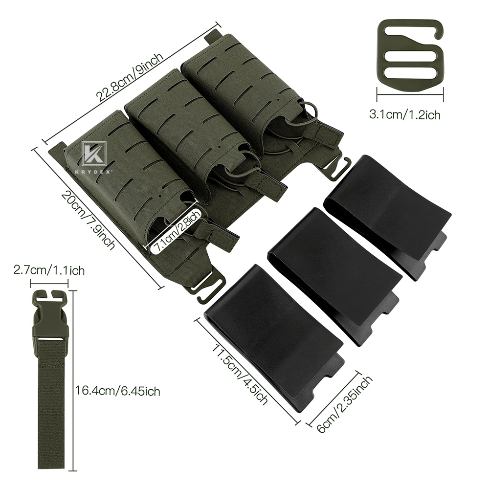 1 * Bolsa de revista triple con solapa frontal KTAR + gancho G + hebilla (5,56 cargadores no incluidos)