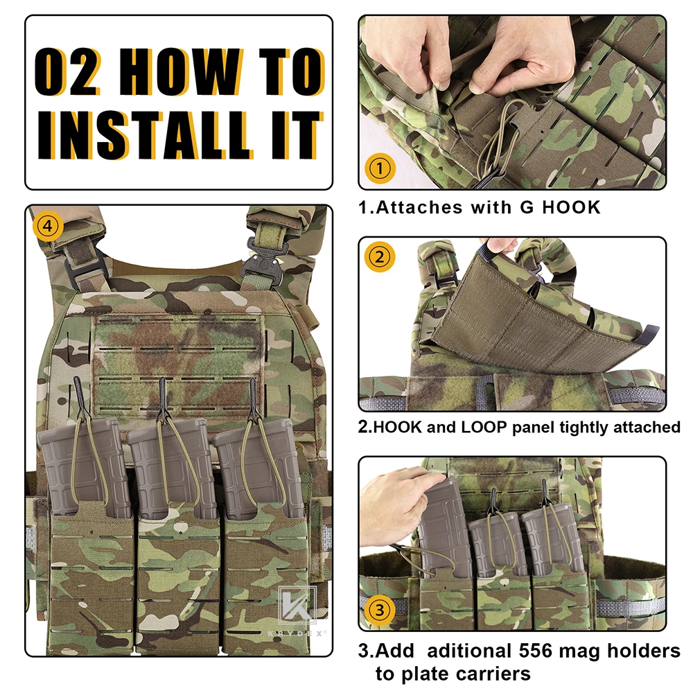 Se adapta a una amplia gama de chalecos, por ejemplo: slickster, FCPC, JPC2.0, etc.