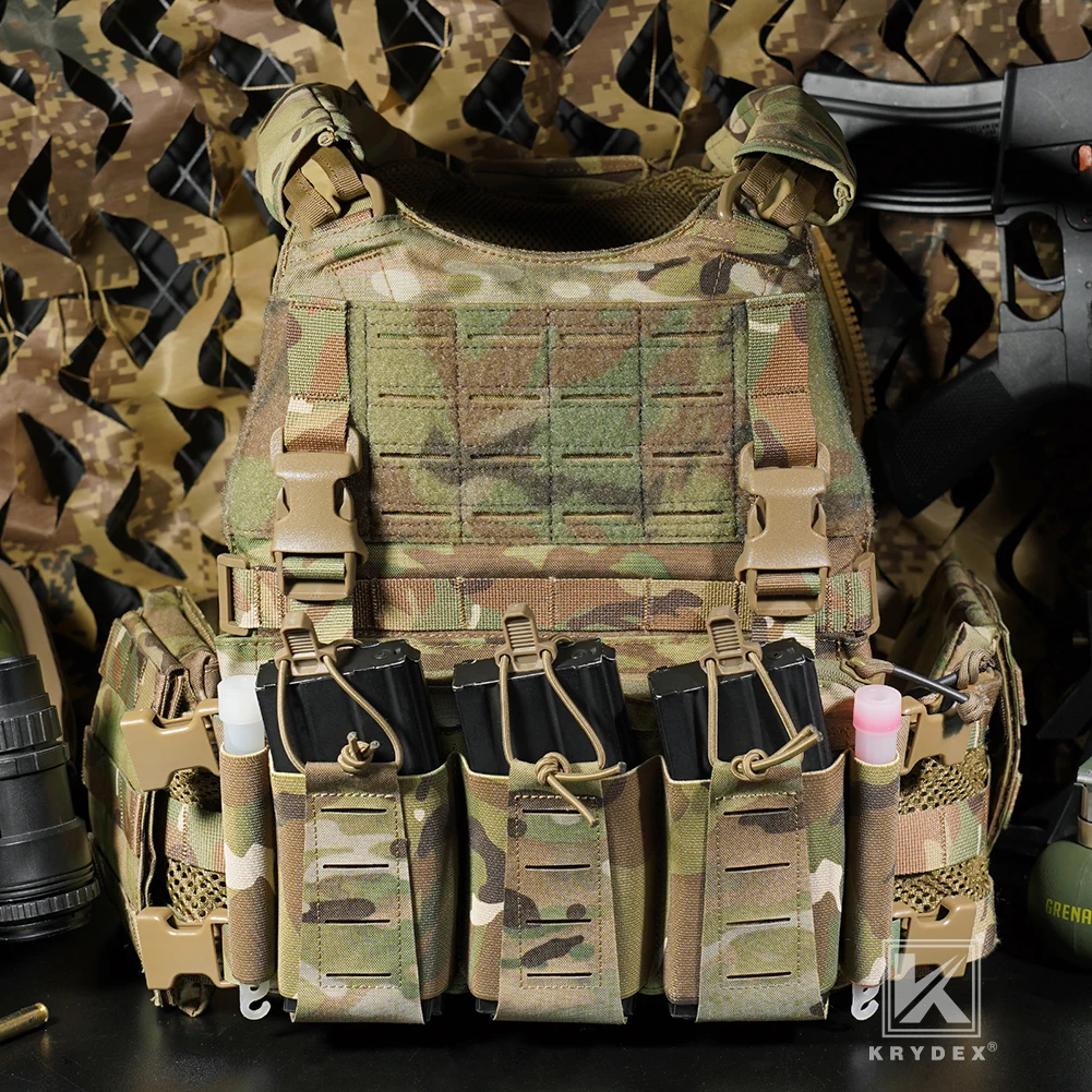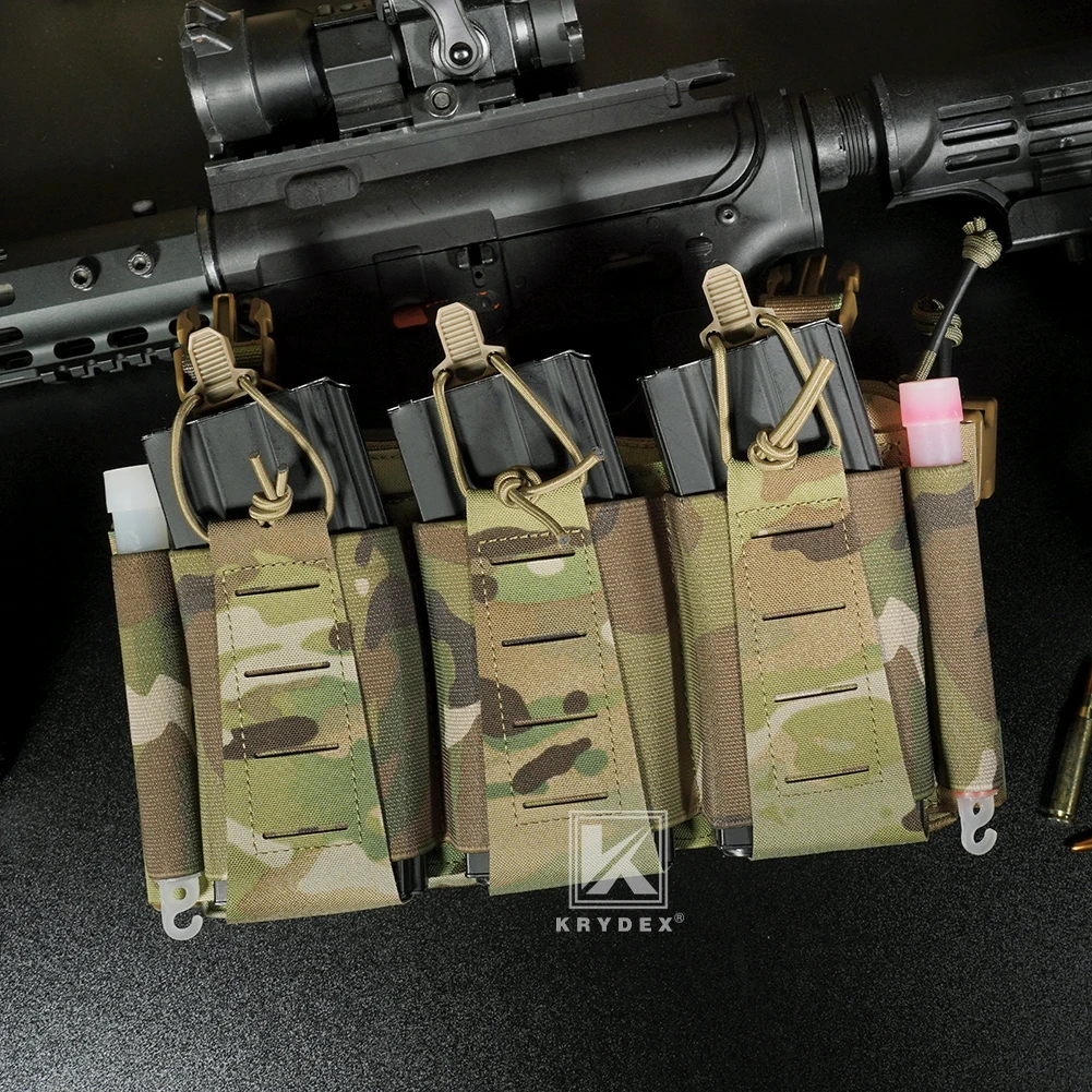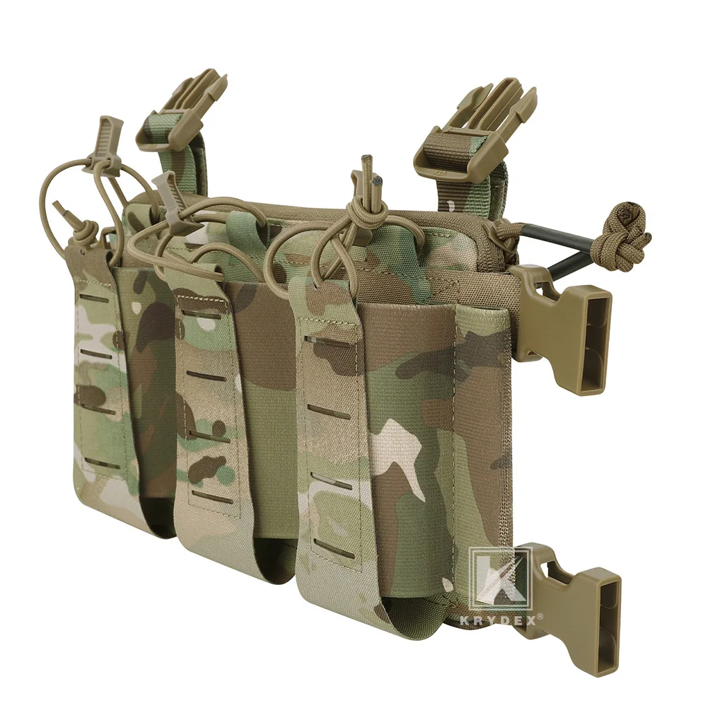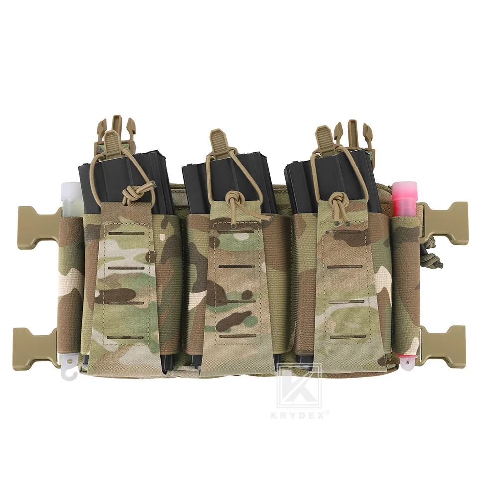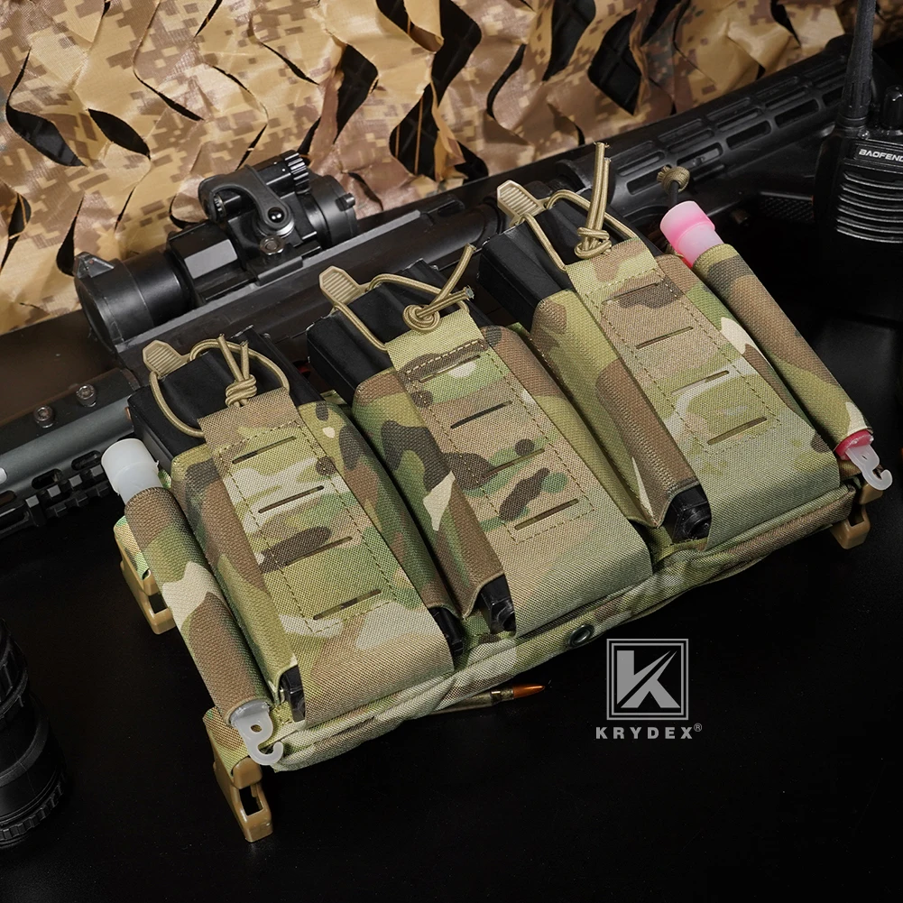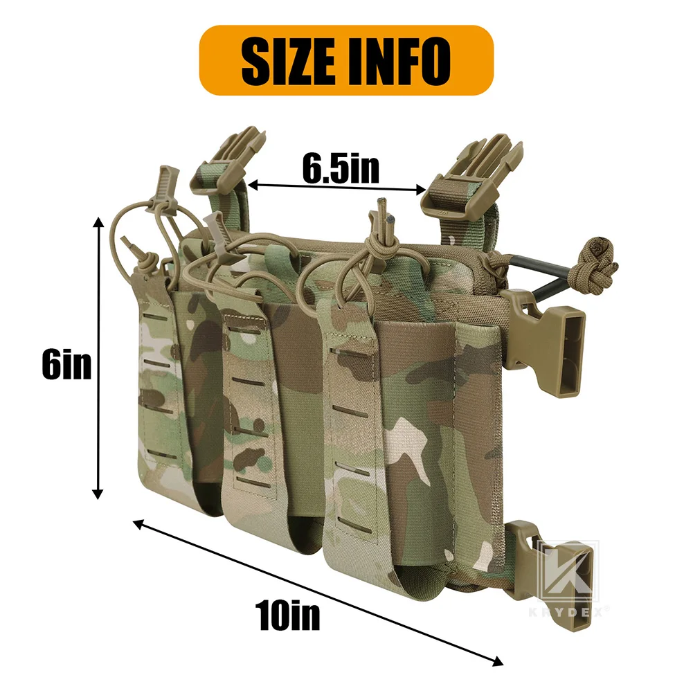 KRYDEX Tactical MOLLE Front Panel Triple Elastic 556 Magazine Pouch Placard GP Pouch Low-Profile Mag Holders for Chest Rig Vest