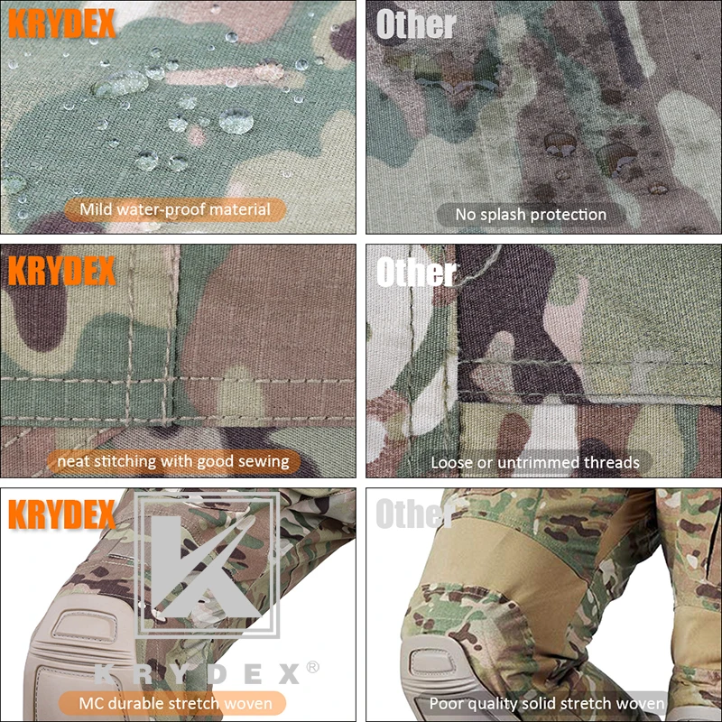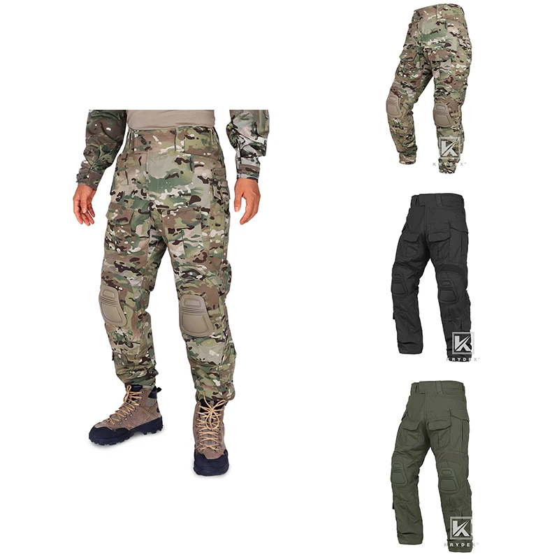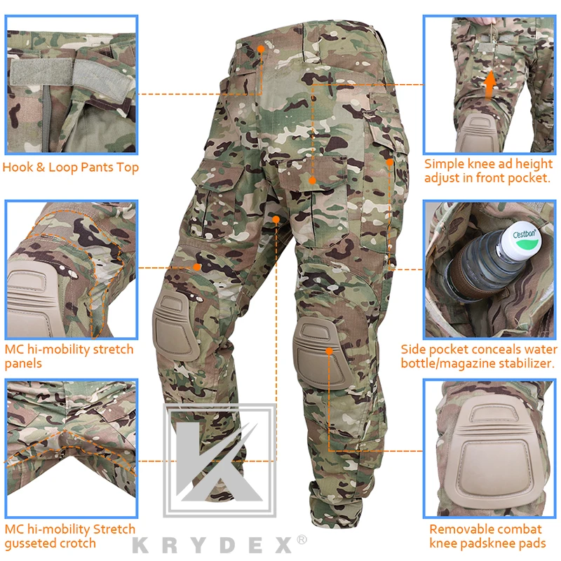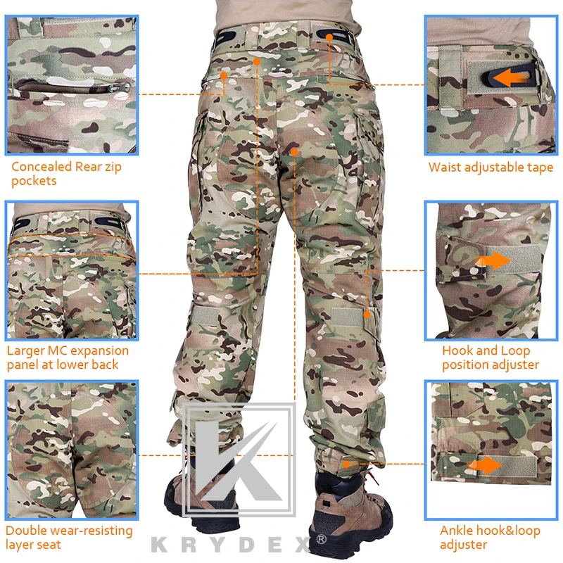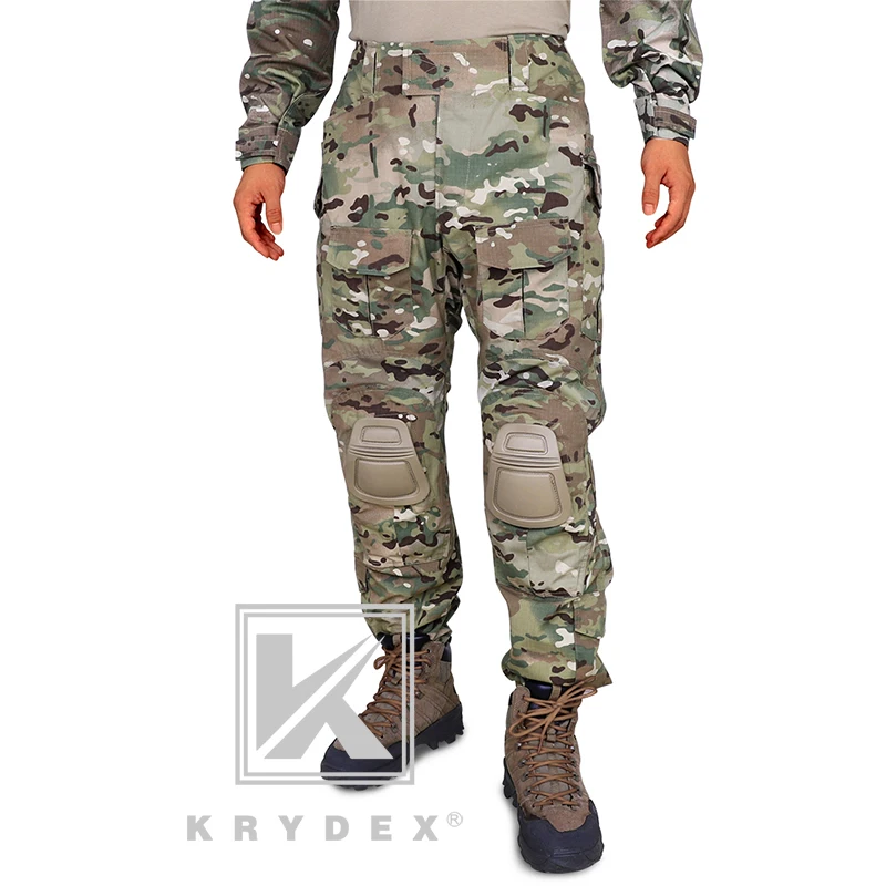 KRYDEX Pantalones de combate para caza Pantalones tácticos al aire libre Uniforme con rodilleras Camo Ranger Green