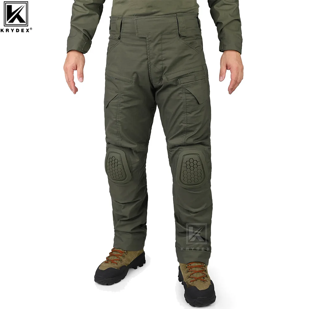 KRYDEX-pantalones de combate para Paintball, pantalón de campo de batalla, uniforme de asalto táctico con rodilleras, caza, Ranger, Verde