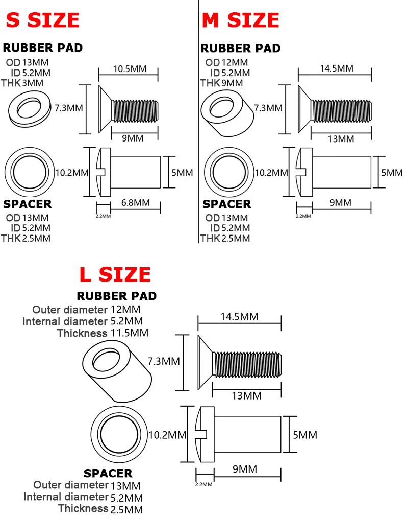 Kydex-tornillo de funda K con adaptador hembra, espaciadores de goma, DIY, para hacer Clip de cintura, 3 tamaños a elegir, 4 Uds./Set