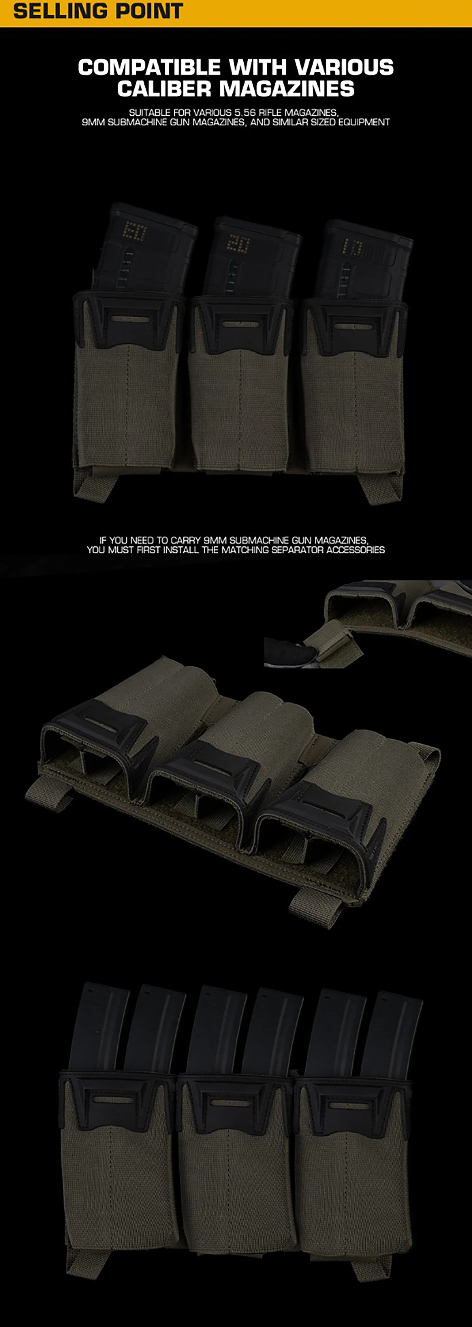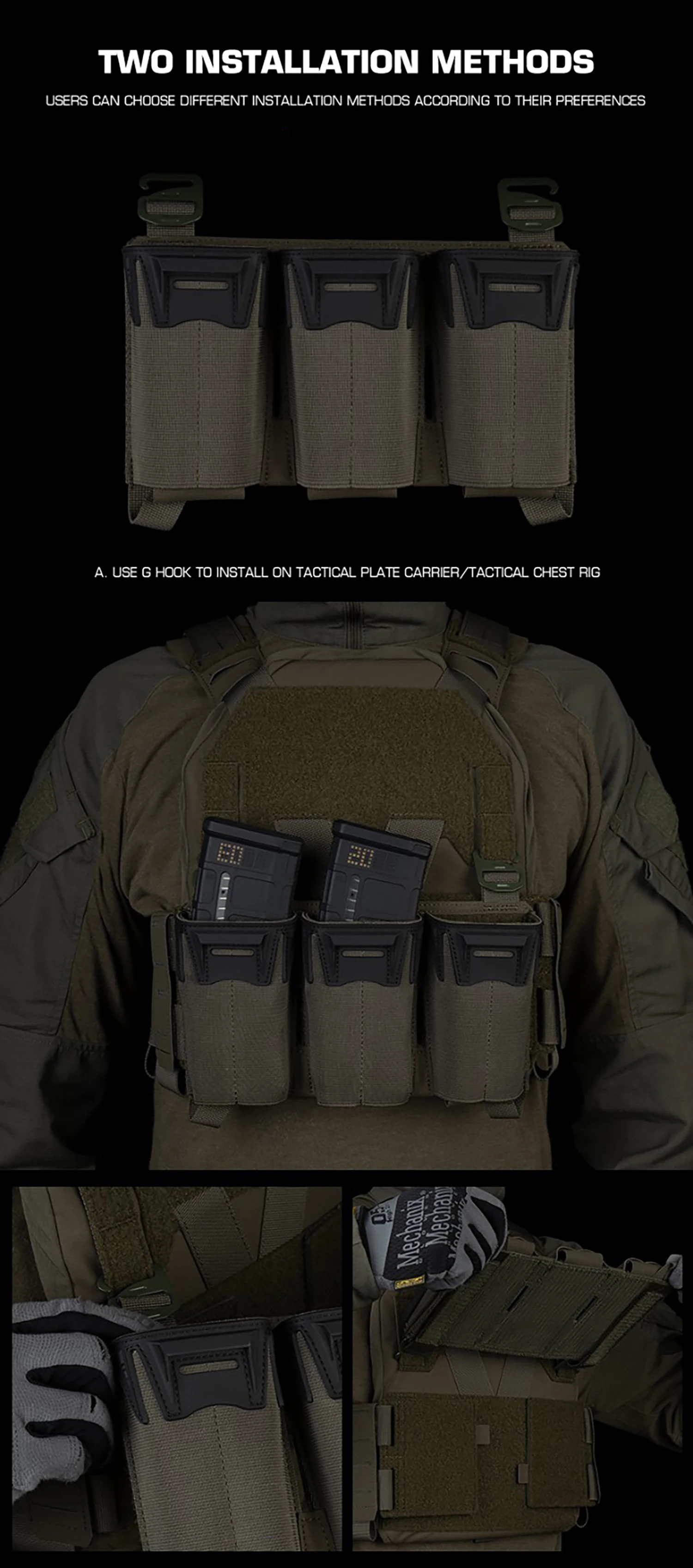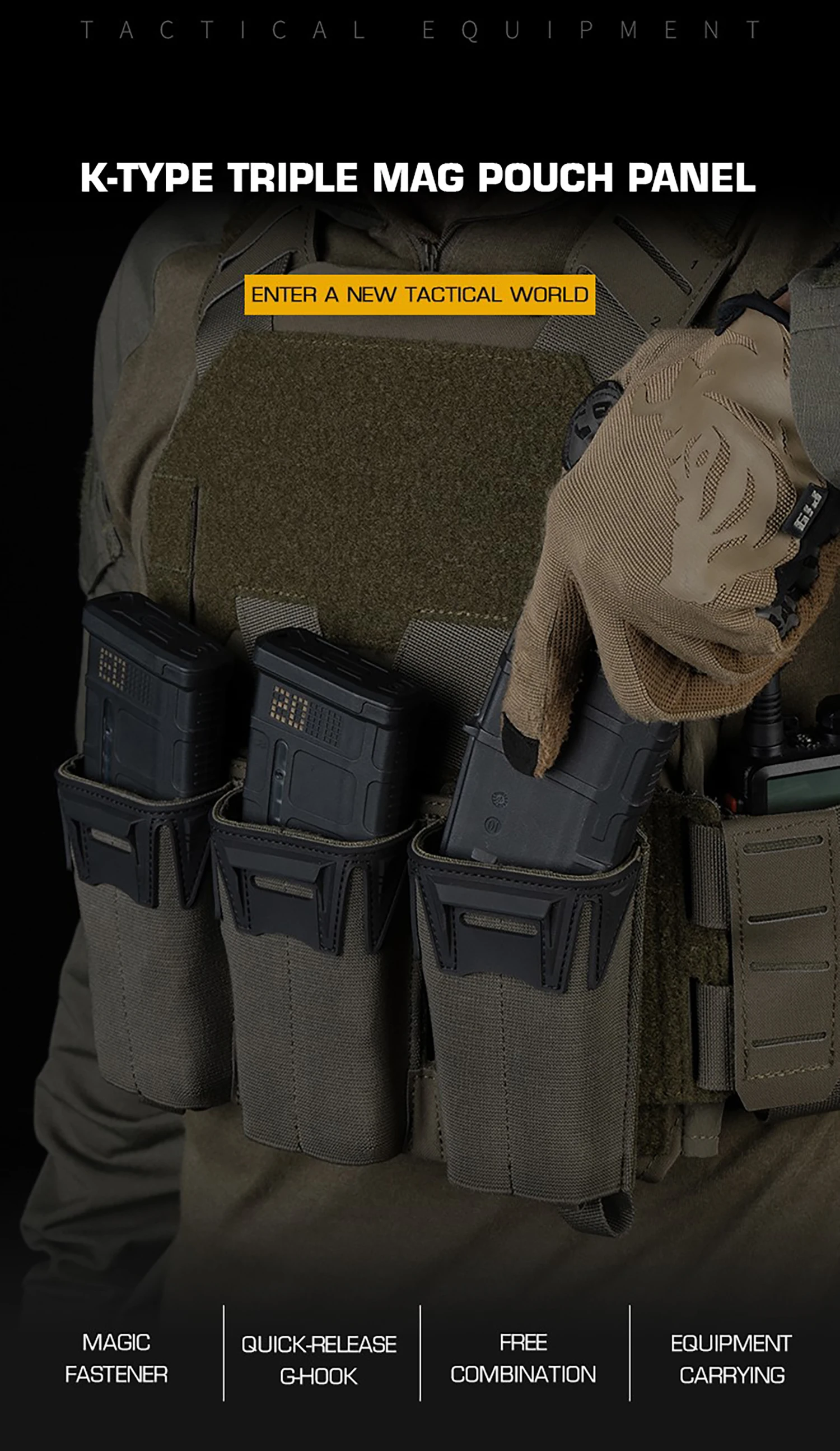 ENTERE UN NUEVO MUNDIAL TÁCTICO con el panel de bolsa KZ Triple Mag.Con un peso de sólo 0,15 kg, este versátil soporte magnético es la solución definitiva para un acceso rápido y organizado a las municiones.Su diseño innovador ofrece dos métodos de instalación rápida y amplia compatibilidad, lo que lo convierte en el núcleo modular perfecto para su soporte de placas, equipo de pecho o configuración de cinturón de batalla en airsoft, entrenamiento táctico o servicio profesional.