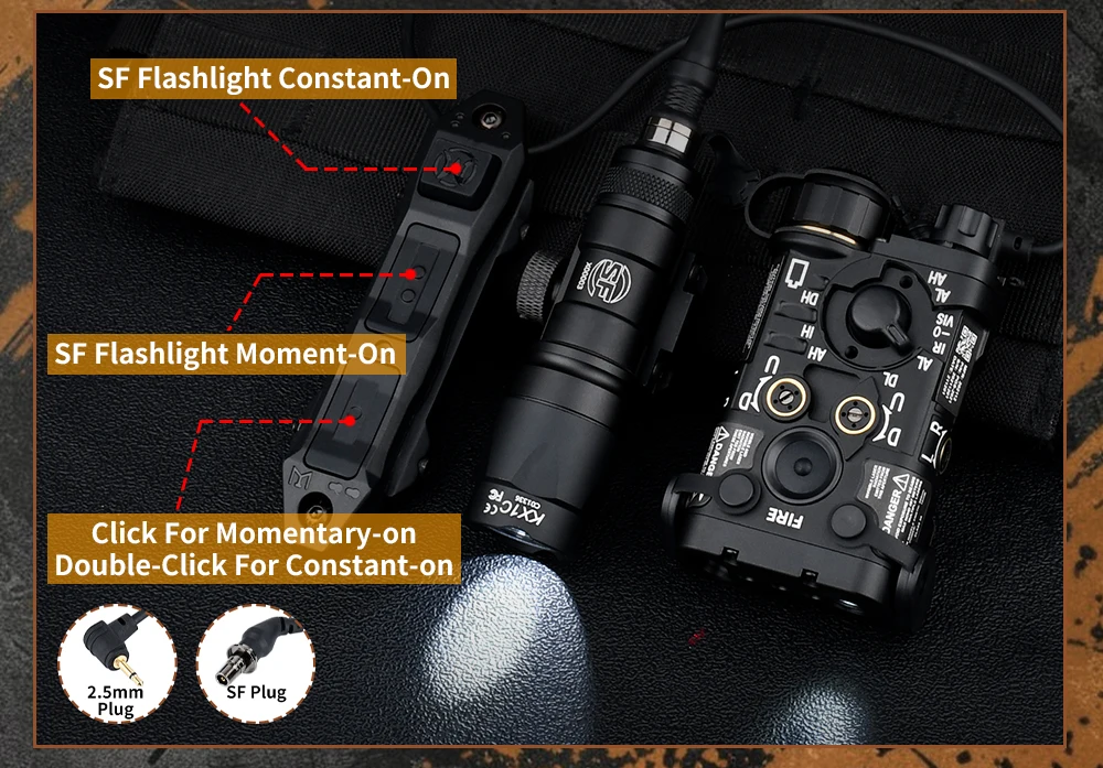 Función:Laser estroboscópico/Laser/Laser+Luz blanca/Laser IR/Linterna estroboscópica