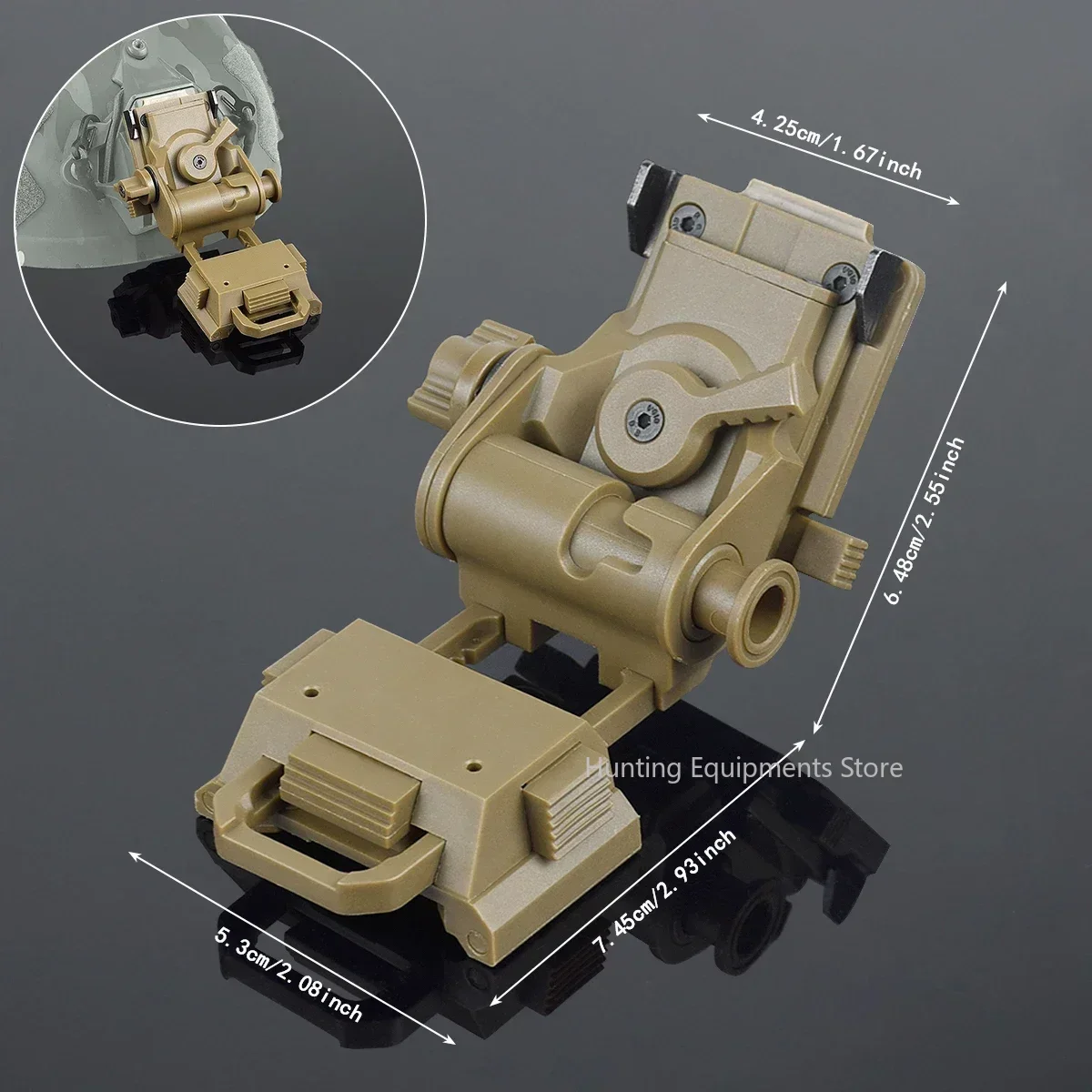 Características:1.Elevación ajustable: El soporte de montaje NGV está diseñado específicamente para ajustar la elevación de los cascos FAST, asegurando un ajuste cómodo y permitiendo a los usuarios encontrar la posición deseada.2.Diseño de plegado rápido:El soporte para casco está diseñado para plegarse rápidamente, lo que permite un fácil transporte y un almacenamiento compacto.Los usuarios pueden plegar y desplegar fácilmente el soporte según sea necesario.3.Distancia ajustable entre el dispositivo de visión nocturna y los ojos:El soporte para gafas de visión nocturna cuenta con un mecanismo ajustable que permite a los usuarios personalizar la distancia entre sus ojos y el dispositivo de visión nocturna.Esto garantiza una visibilidad cómoda y clara durante el uso.4.Ajuste de ángulo:El stent del casco permite ligeros ajustes de ángulo al montar dispositivos de visión nocturna.Esta característica garantiza una alineación y posicionamiento adecuados para la compatibilidad con varios modelos de visión nocturna, incluidos PVS15, PVS18, PGPNVG18 y más.5.Compatible con varios modelos de visión nocturna:El soporte para casco de nailon está diseñado específicamente para ser compatible con una variedad de modelos de visión nocturna, incluidos los populares como PVS15, PVS18, PGPNVG18 y otros.Esta compatibilidad garantiza versatilidad y amplía su usabilidad.Especificación:Origen: China continentalLongitud guía: 7 cmNúmero de modelo: Soportes y accesorios de alcanceNombre del producto: Soporte de visión nocturna L4G24