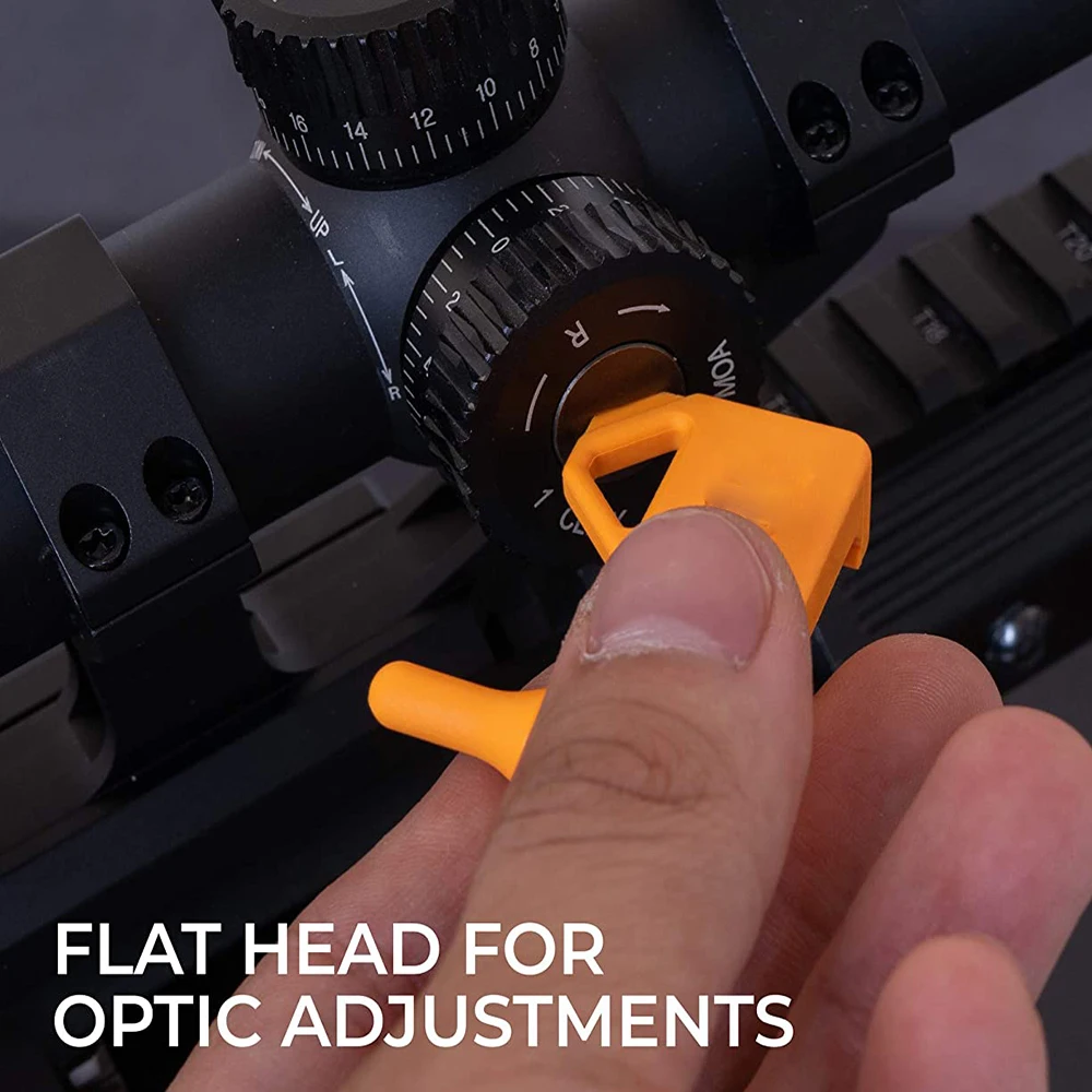 3. Incluye una herramienta plana integrada para ajustar la desviación y elevación de la vista del rifle.