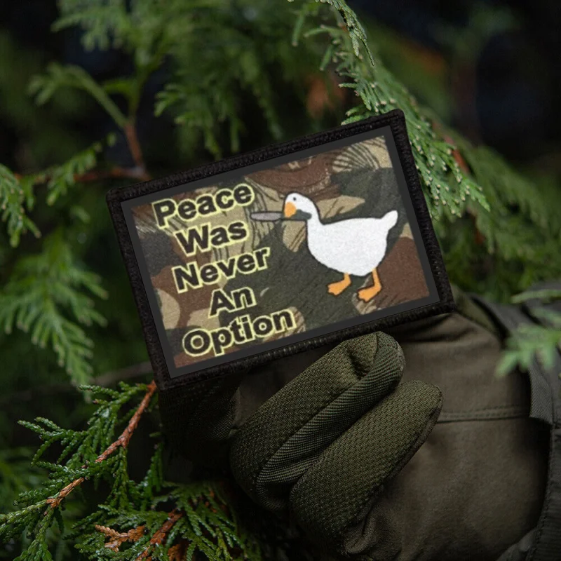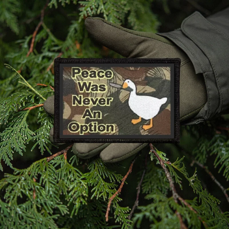 La Paz nunca fue una opción, parches tácticos divertidos con estampado de ganso blanco, Parche de gancho y bucle, insignia de moral militar, pegatinas para mochila